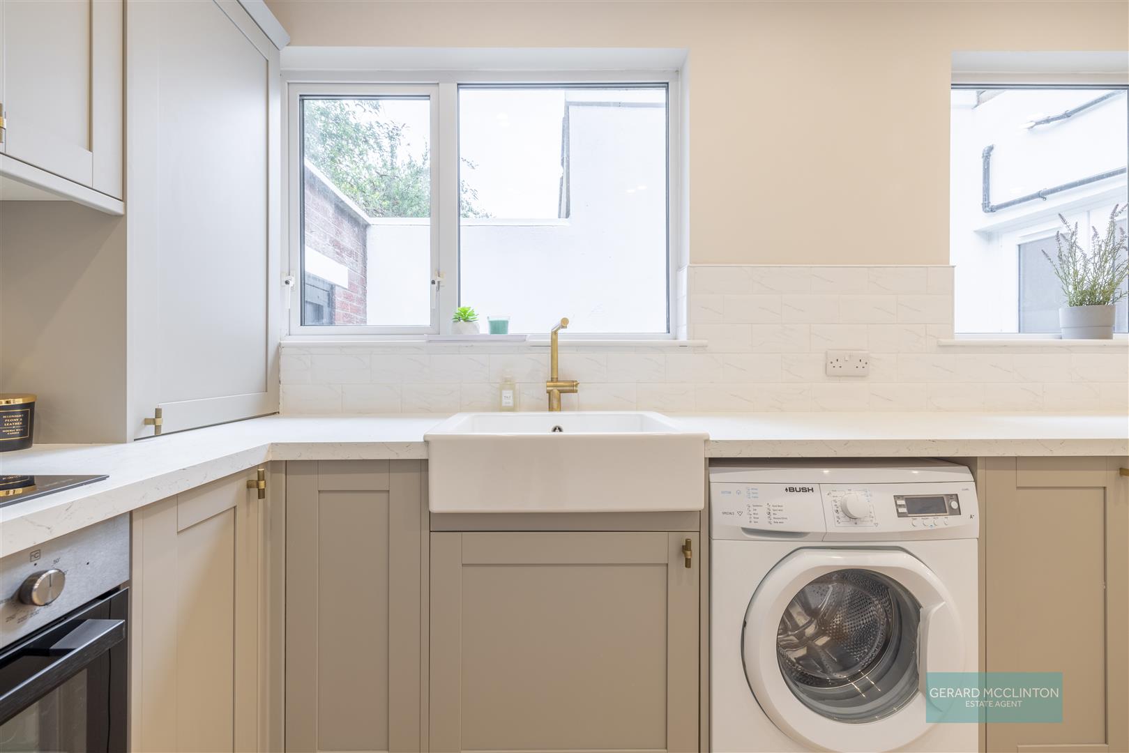 The kitchen, previously extended, has a brand-new luxurious fitted kitchen added which includes a range of fitted appliances, a beautiful Belfast style sink with bronze mixer tap, tiled splashback, a handy breakfast bar with double socket and USB ports and two double glazed windows overlooking the rear patio garden.