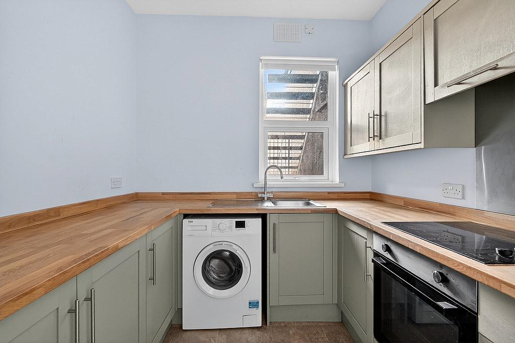Kitchen – 2.43 × 3.05 (10'0" x 7'9"). Fitted units, cooker, fridge, washing machine.