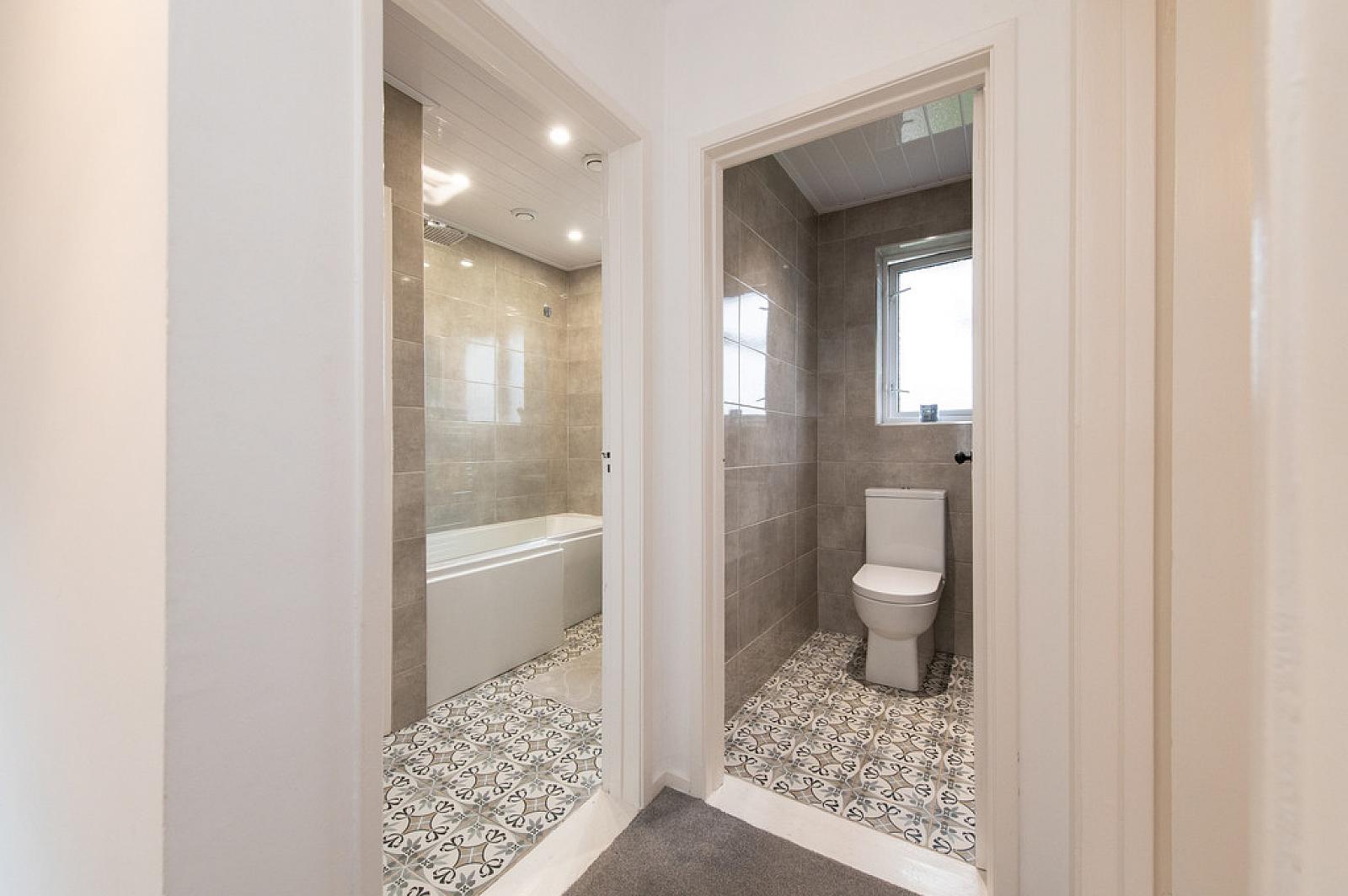 SEPARATE W/C Low flush W/C, ceramic tiled flooring, PVC ceiling, downlighters, fully tiled walls