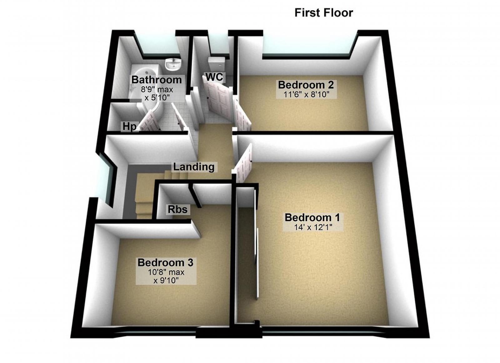 BEDROOM (1) 14' 0" x 12' 1" (4.27m x 3.68m) Built in robes