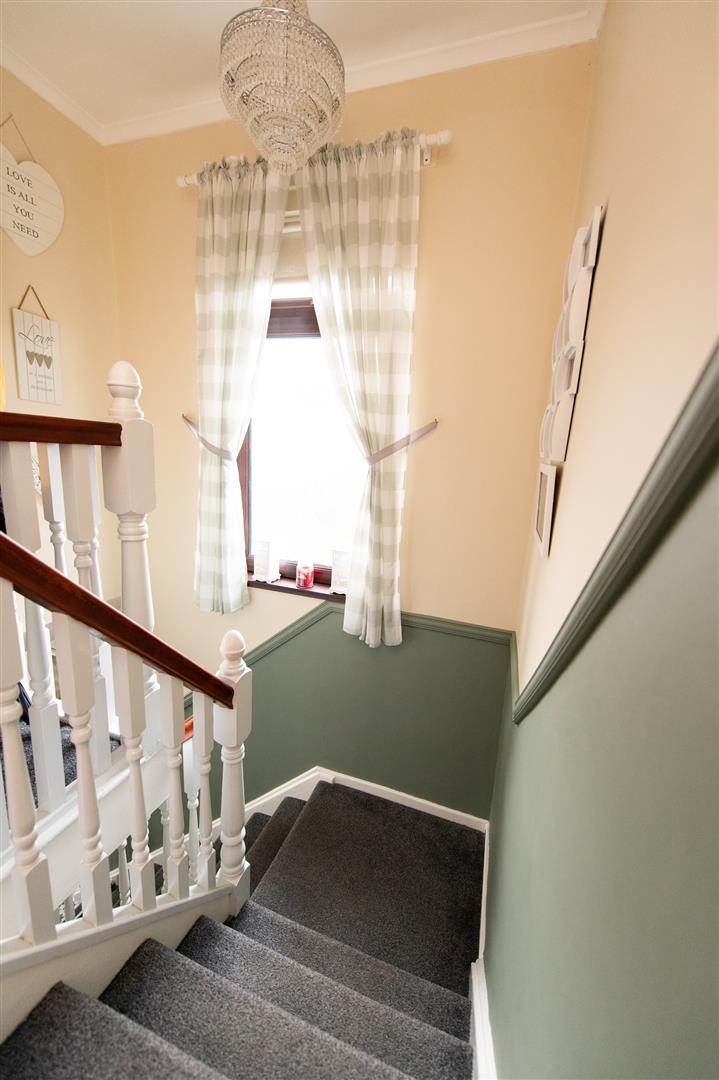 Landing, access to fully floored roofspace with eave storage, power and light, window