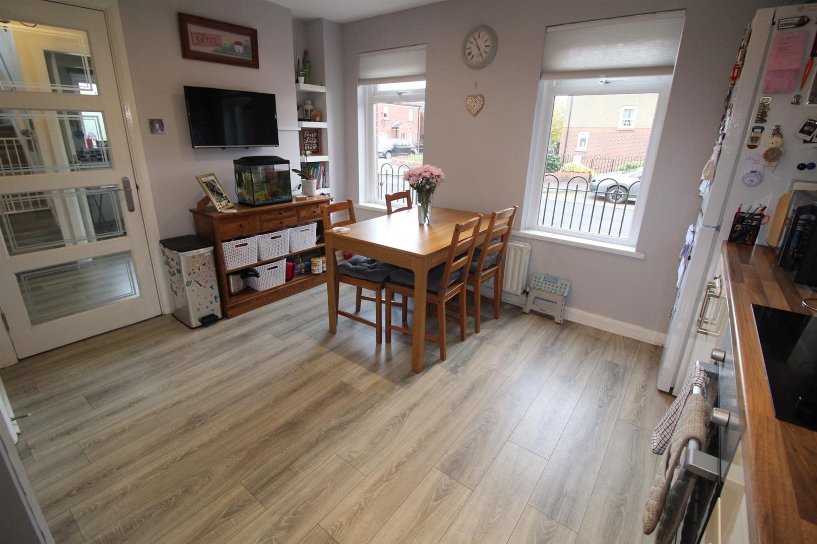 This well-presented three-bedroom mid-terraced property is ideally located in a popular and convenient area of North Belfast, offering easy access to Belfast City Centre and local amenities. The property features a bright lounge with a charming feature wood-burning stove, a fitted kitchen and a useful downstairs W/C. Upstairs, there are three well-proportioned bedrooms and a contemporary family bathroom. Benefitting from gas-fired central heating and double glazing throughout, this home ensures comfort and efficiency. Externally, the property offers a private rear patio area ideal for outdoor relaxation, along with a paved patio and off-road parking to the side. This attractive home will appeal to first-time buyers, families, and investors alike seeking a move-in-ready property in a sought-after location.