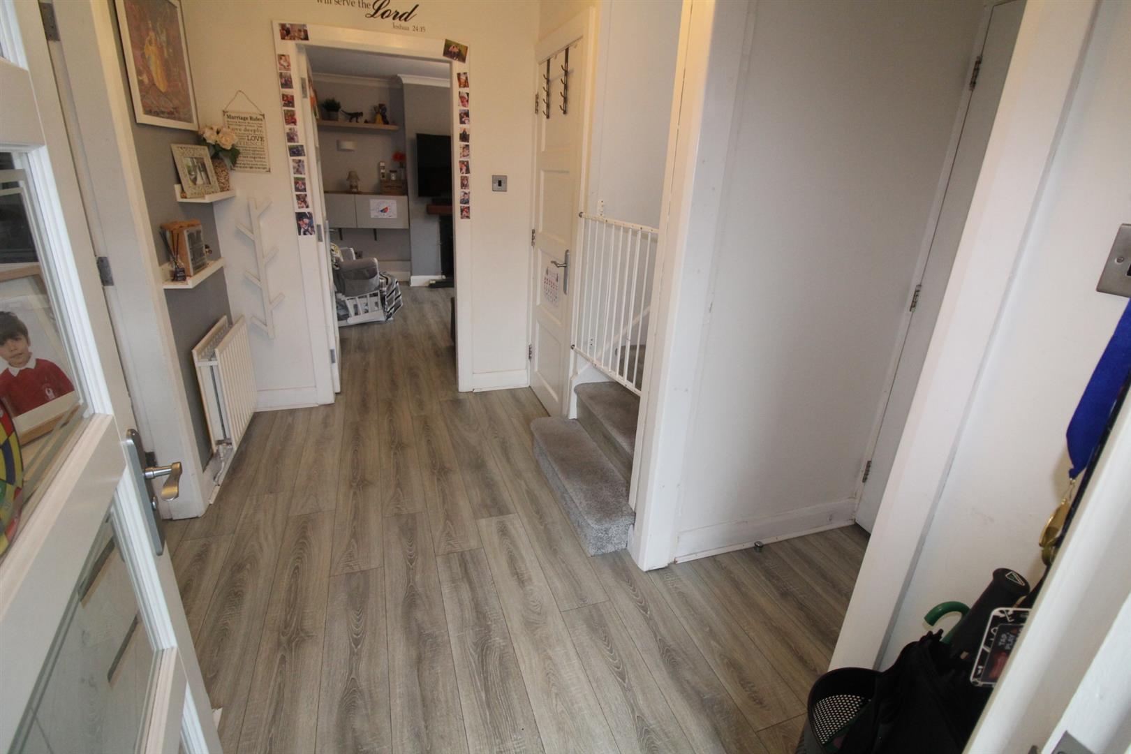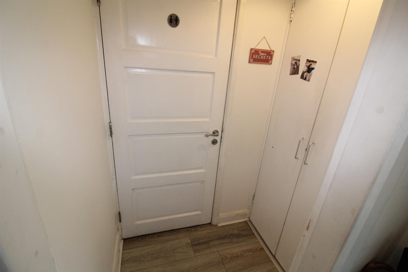 Laminate wooden flooring, under stair storage, separate built in storage cupboard