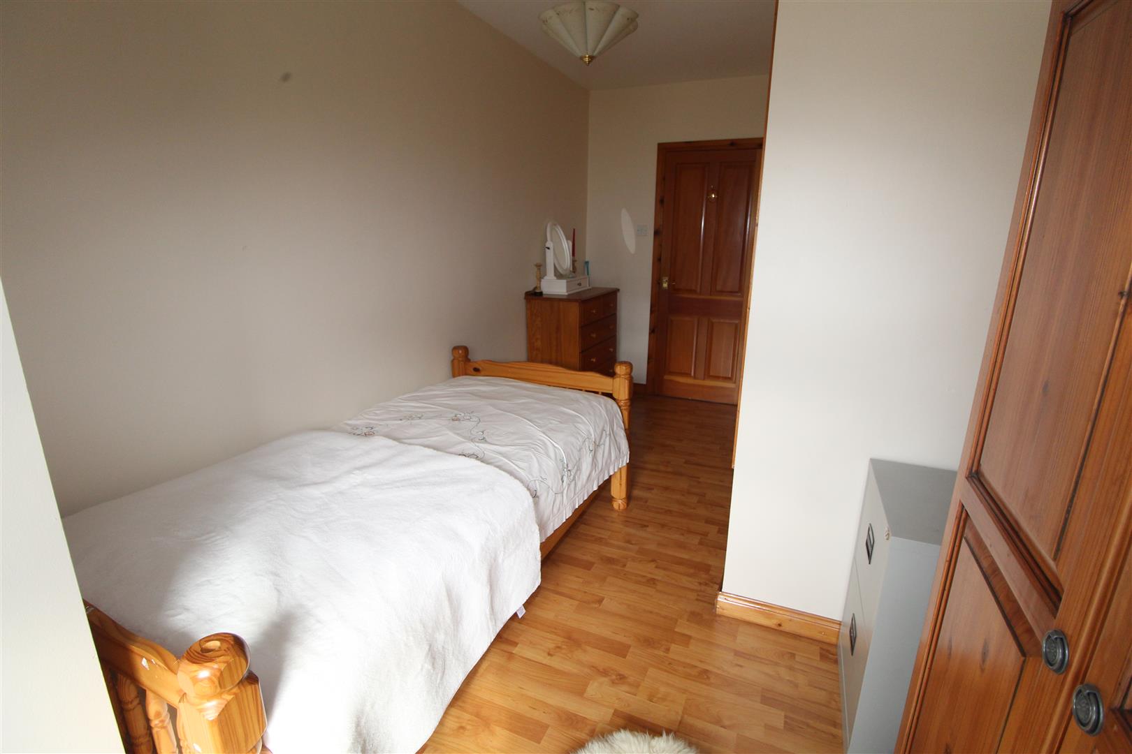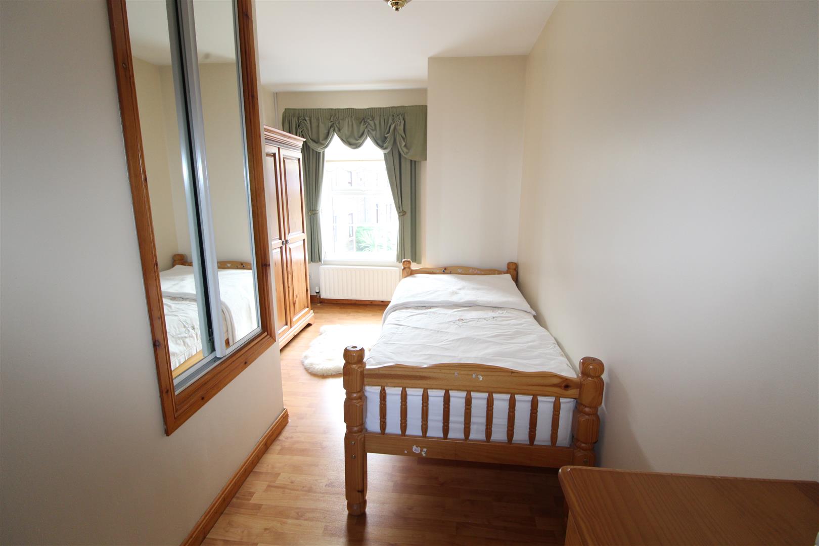 Laminate wood flooring, built in robe