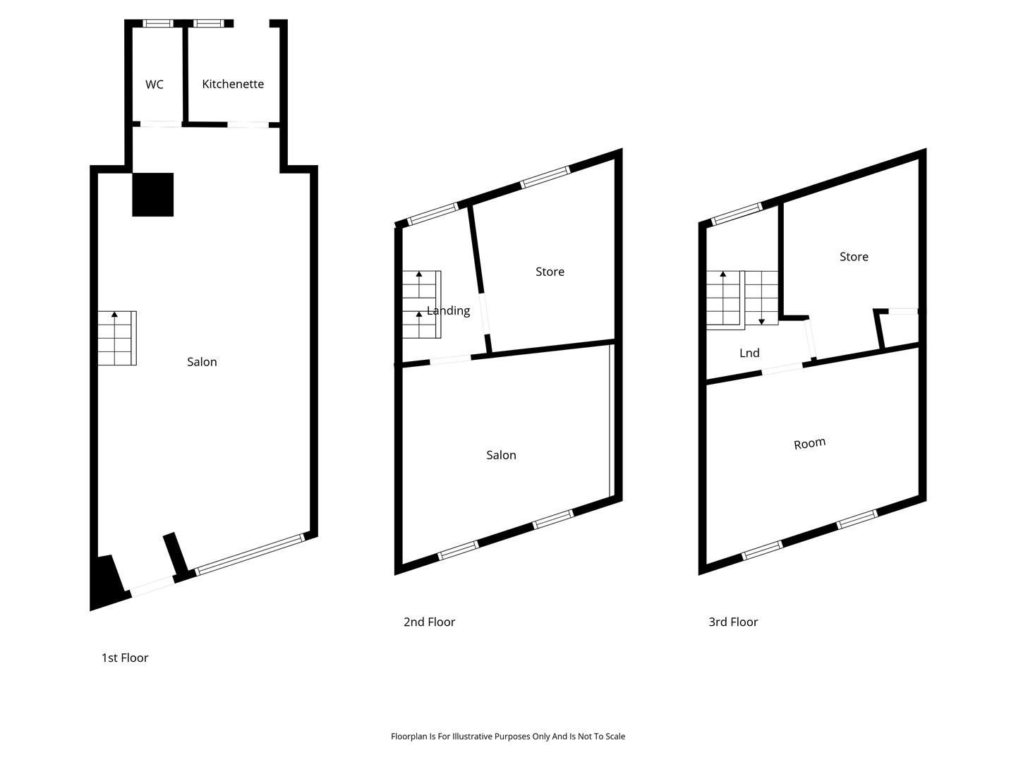 Accommodation comprises main retail unit/studio, kitchenette and furnished cloakroom to the ground floor, with four separate offices/studios/store rooms spread across first and second floors. Externally, there is access via the kitchenette to an enclosed rear yard.