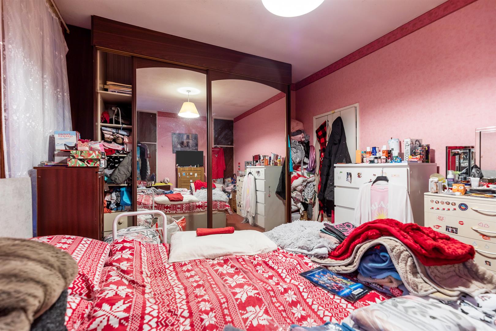 Fitted wardrobes in mirror panelled sliding doors. Separate built in wardrobes/storage units.