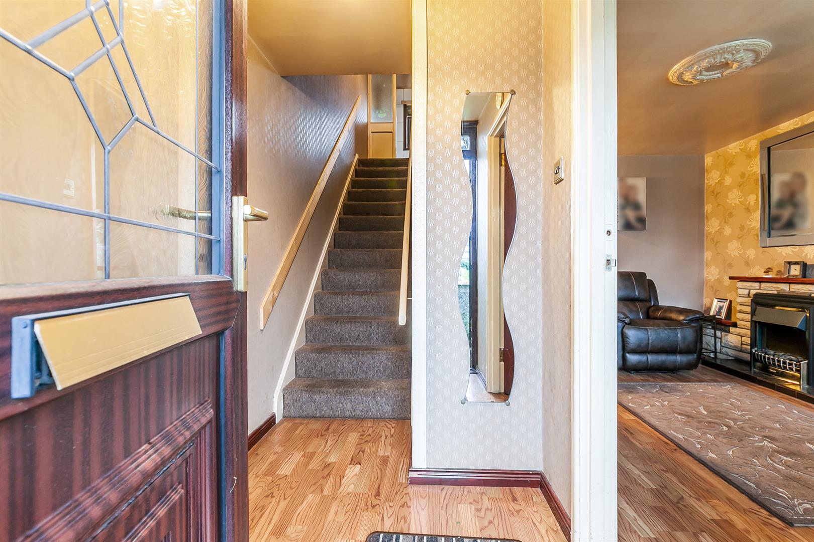 PVC double glazed front door. Wood laminate floor covering. Stairwell to first floor. Glass panelled door leading to: