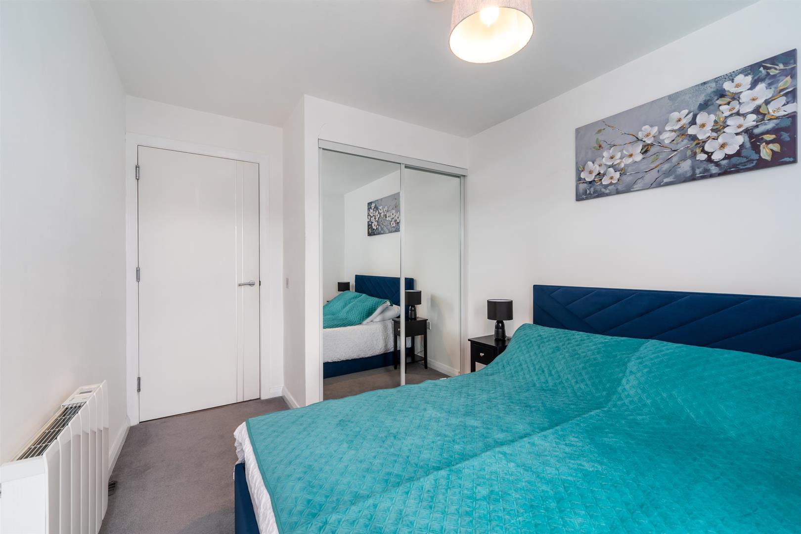 Wall to wall fitted wardrobes in mirror panelled sliding doors. Feature window to front elevation.