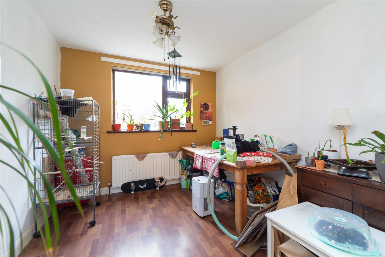 Wood laminate floor covering. PVC double glazed window to rear elevation.