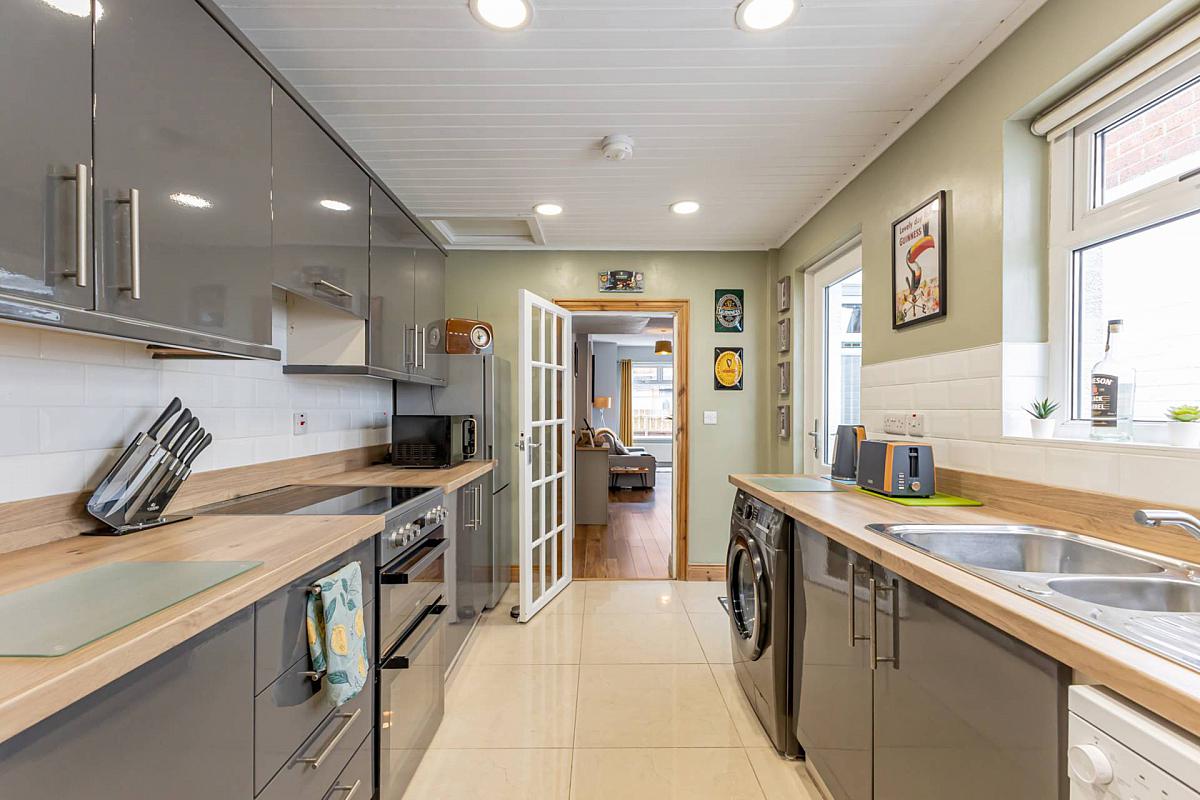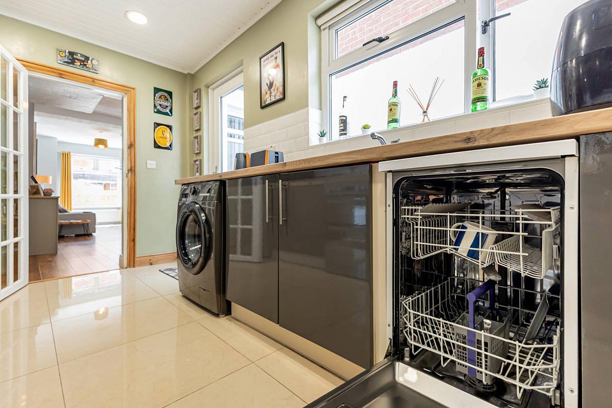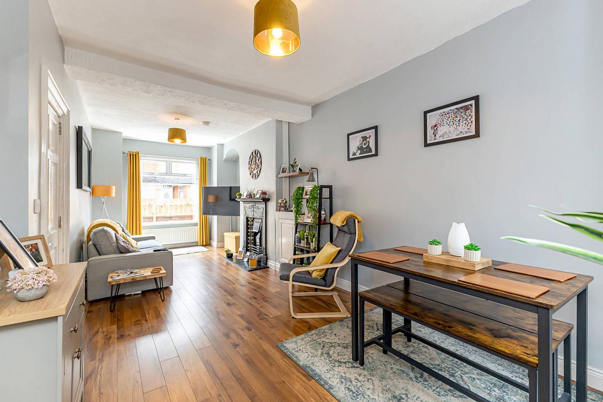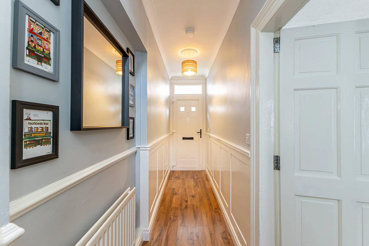 This is a beautiful three-storey terrace property located just off the Cregagh Road. An elegant hallway adorned with period-style panelling sets a warm and inviting tone. The living room also has a feature period fireplace, complemented by the neutral décor. An extended modern fitted kitchen with integrated appliances and tiled flooring, looks out over the smart, well kept yard.