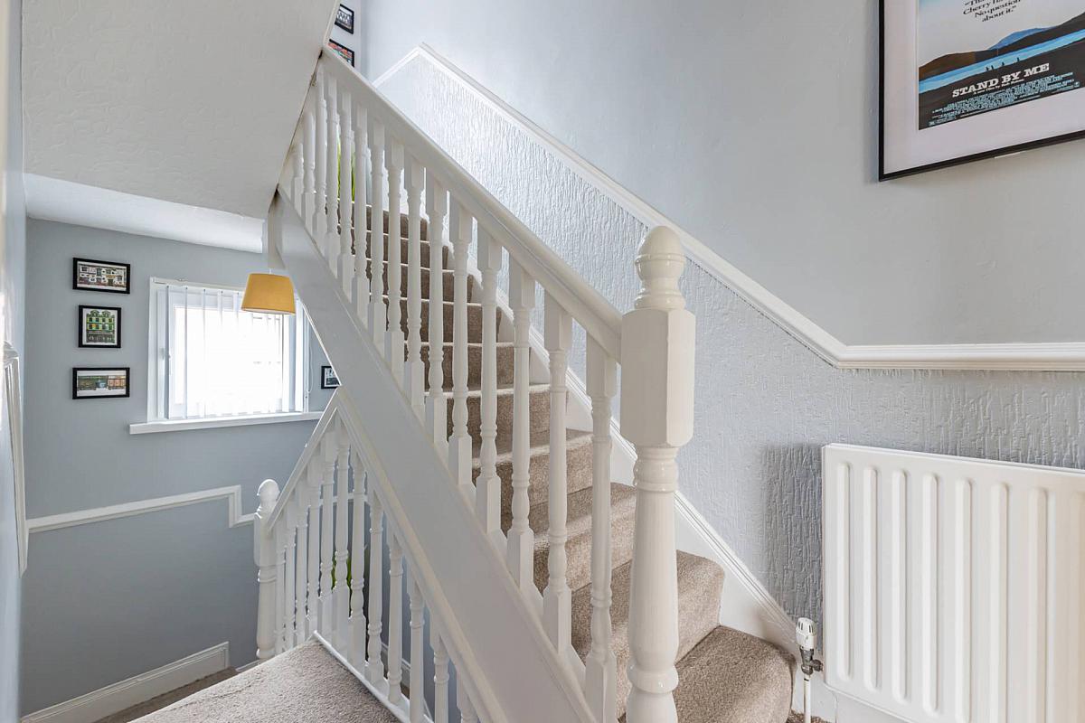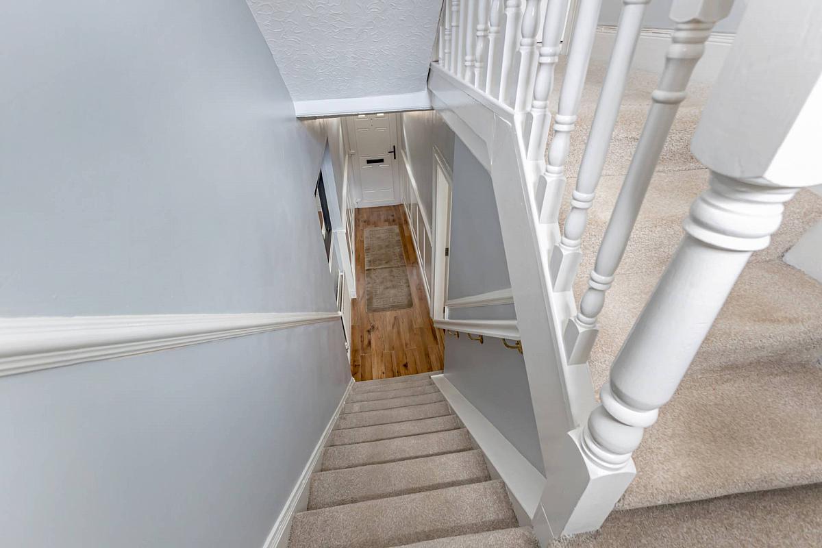 Upstairs there are three generously proportioned bedrooms and a four-piece bathroom over the two upper floors. The modern bathroom suite with a walk-in shower and marble-effect tiling adds a contemporary flair to this period property. There are traditional staircases with classic balustrades between each floor.