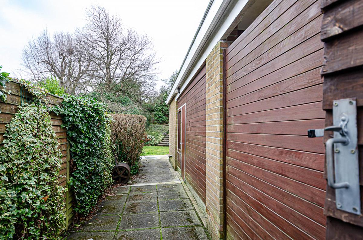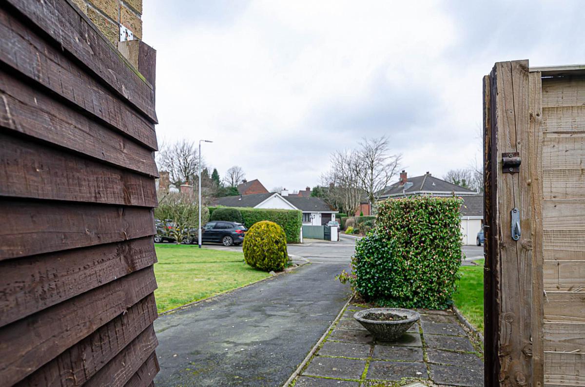 Front garden in lawn, shrubs and trees, paved area, with good driveway and carport, rear garden in lawn, shrubs and trees with paved patio and rockery. Greenhouse and outside storage shed