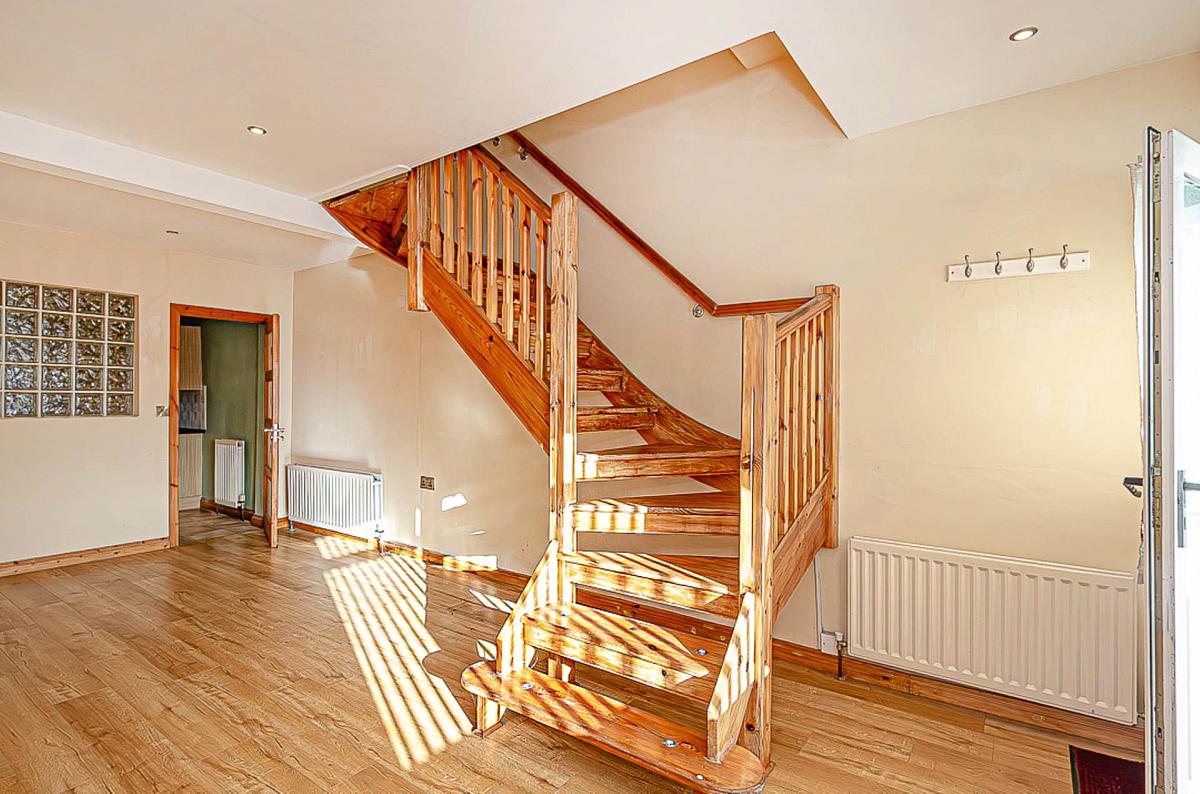 Open plan living area with open staircase