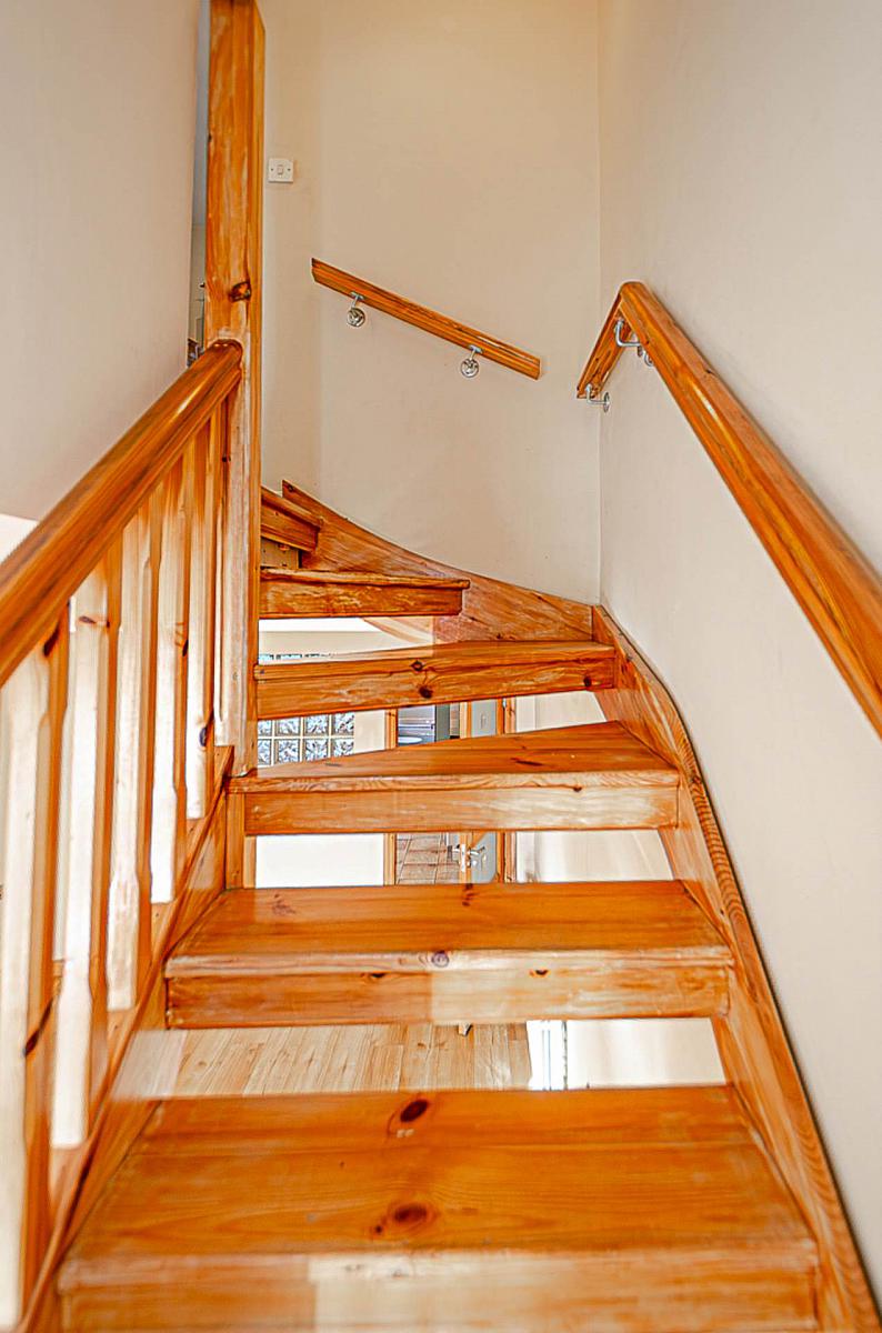 Open staircase bay window, wall lighting, recessed spotlights, glass block feature, and stair lighting