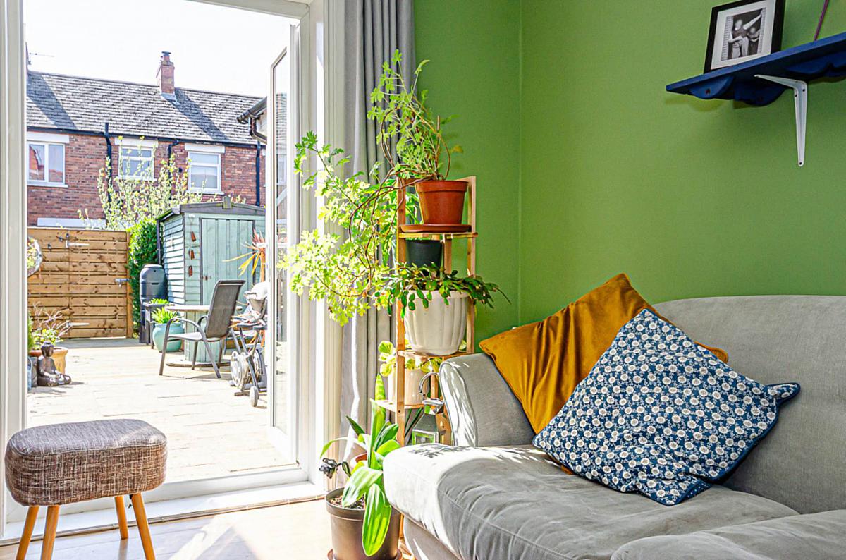 Through lounge with French doors to garden