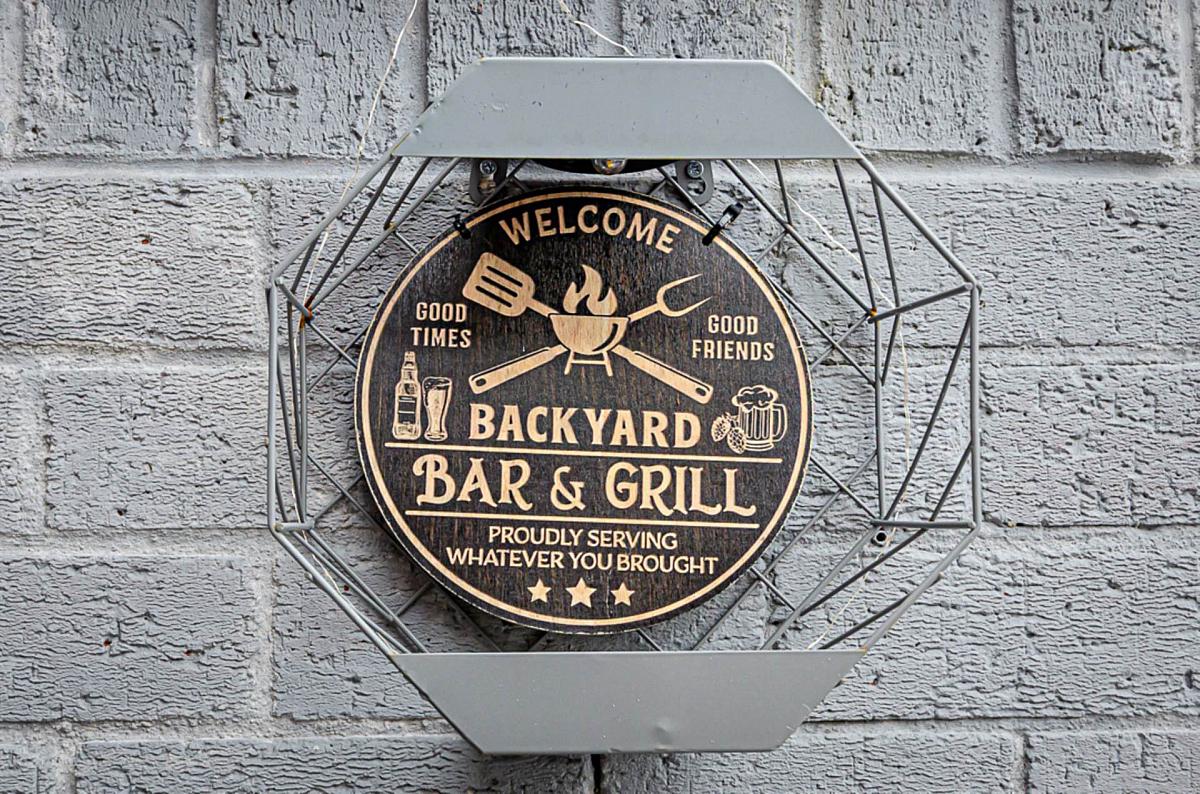 Range of high and low level, stainless steel and glass extractor canopy, part tiled walls, stainless steel sink, dining area, sliding door to garden