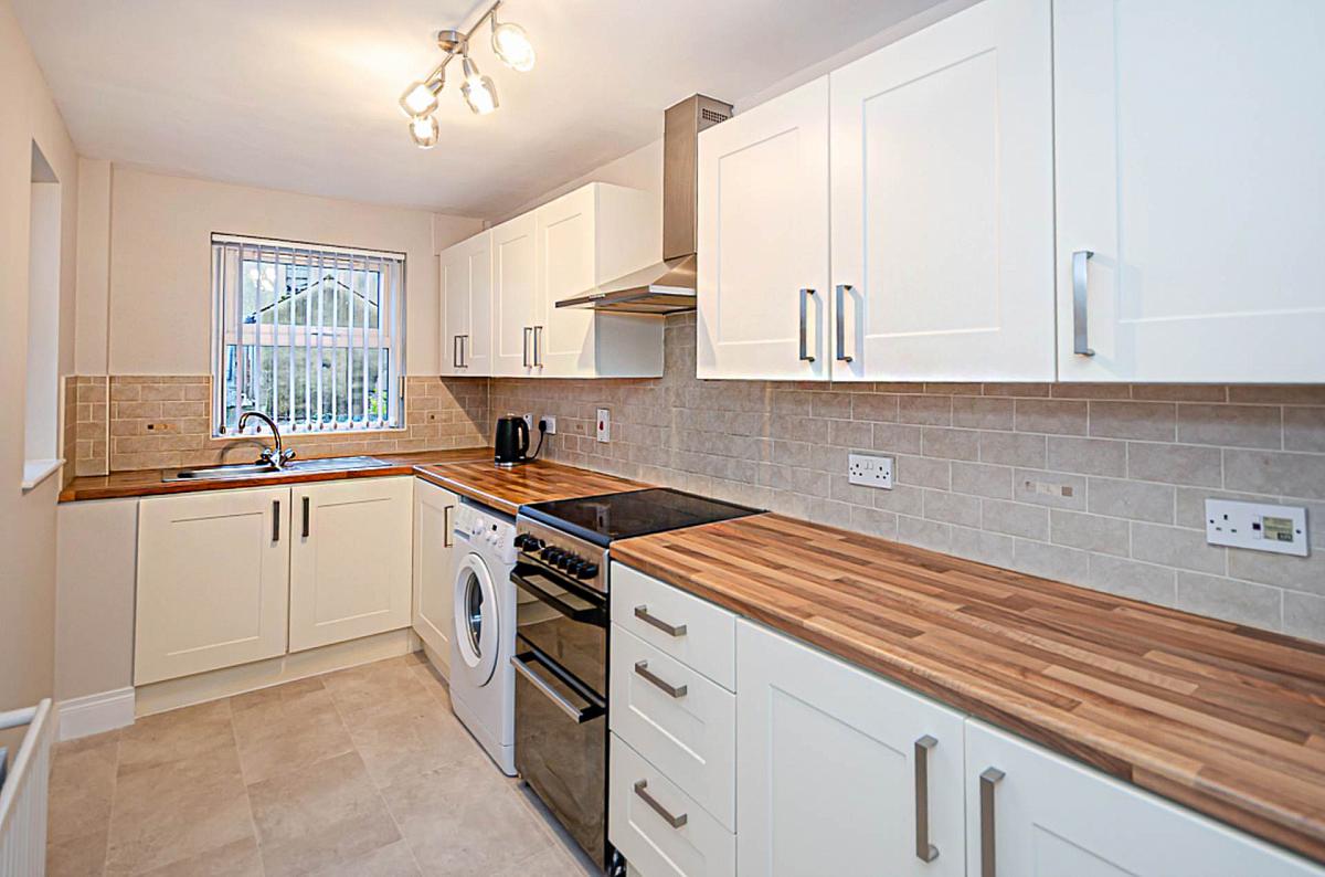 To the rear, the modern fitted kitchen enjoys pleasant open views across the garden, offering a bright, functional, and well-planned space for cooking and dining.