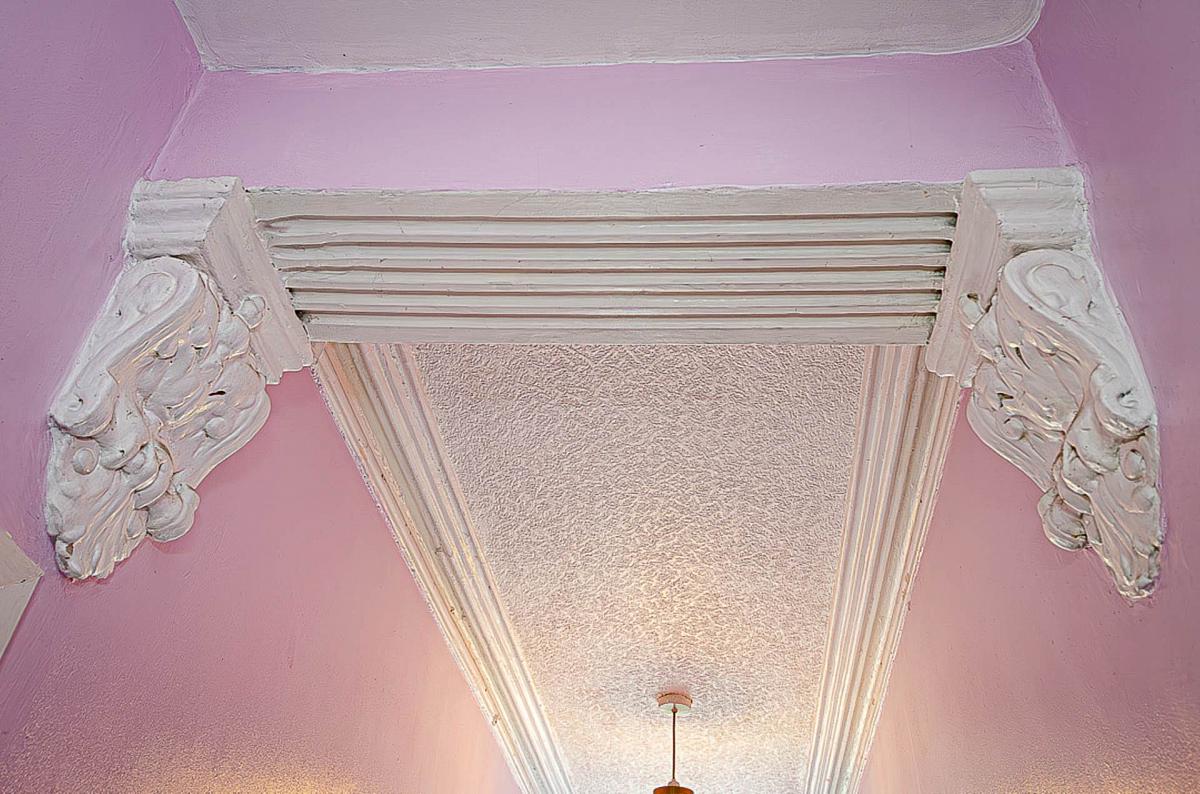 Cornice, corbels and ceramic tiled floor