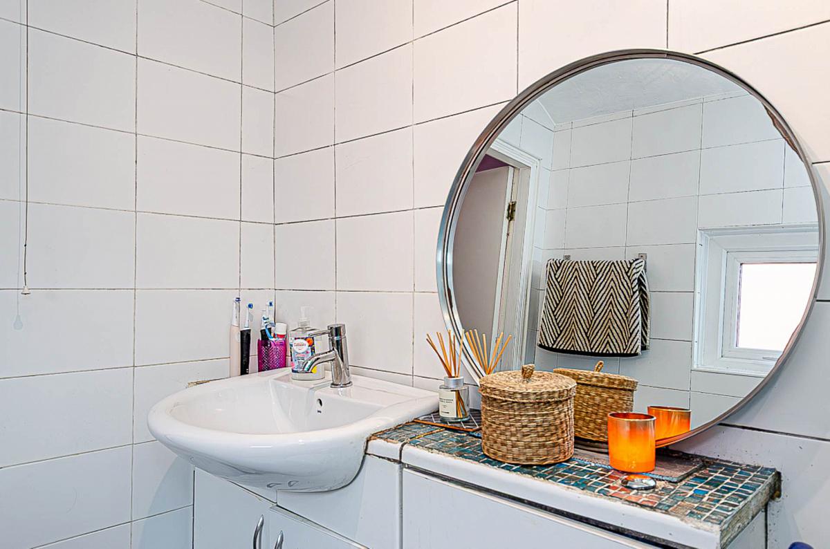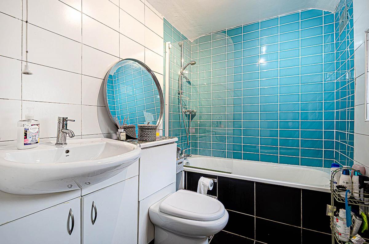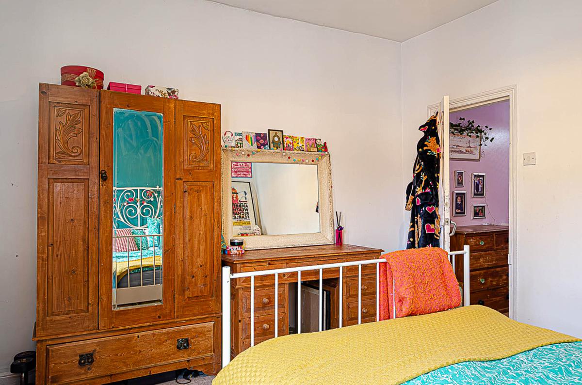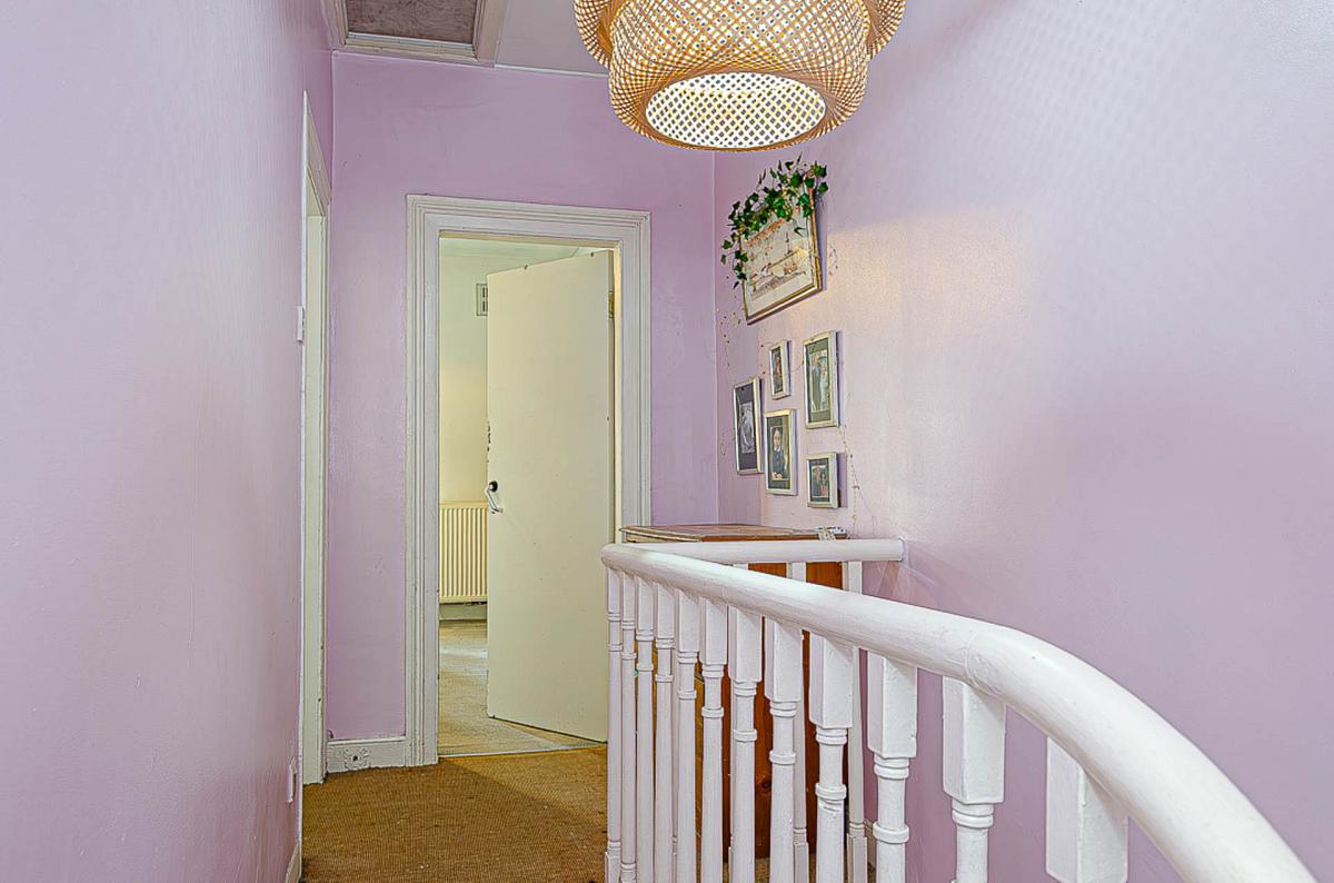 Upstairs, two well-proportioned bedrooms provide flexible accommodation, both with generous floor space and natural light. The family bathroom comprises a panelled bath with overhead shower, pedestal wash hand basin, and low flush WC, and would also benefit from modernisation.
