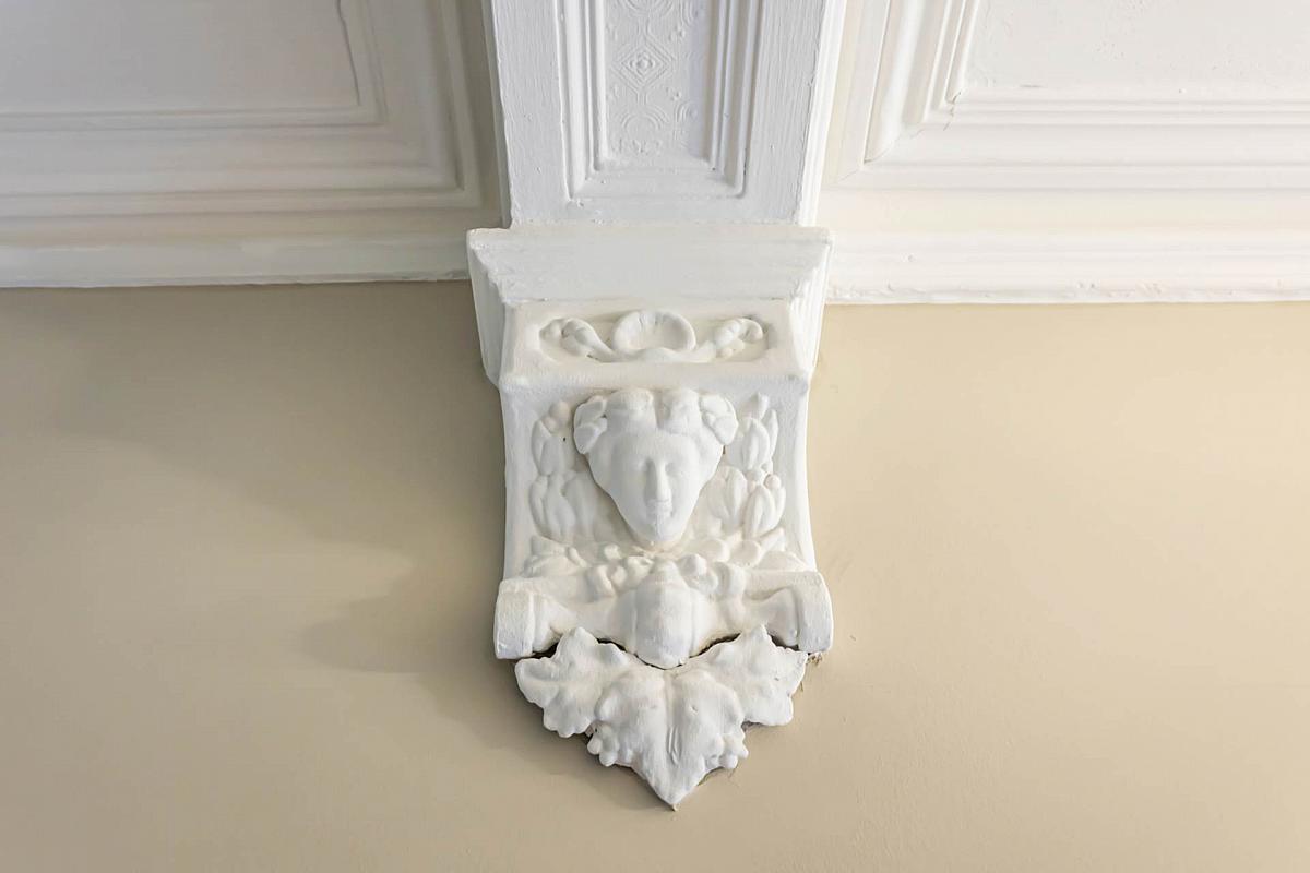 Cornice, decorative corbels, timber panelling, radiator cover and timber laminate floor