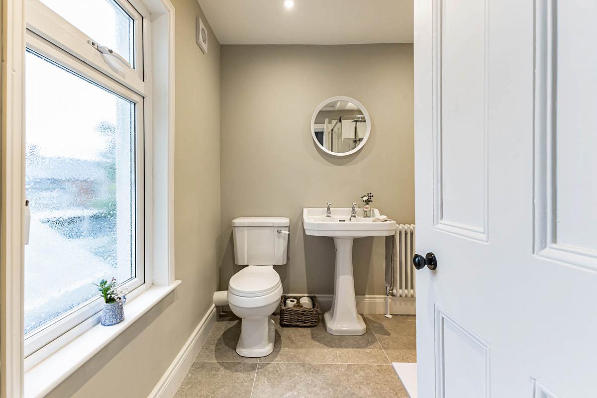 Upstairs, the newly carpeted staircase and landing lead to a sleek, modern shower room, complete with a walk-in enclosure and dual shower heads. Four inviting bedrooms await, each offering a tranquil retreat, with the main bedroom boasting a large bay window that frames the room with light and space.