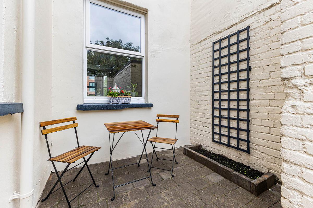 Outside, a neatly paved courtyard provides a private escape ideal for morning coffee, al fresco dining, or simply unwinding at the end of the day.
