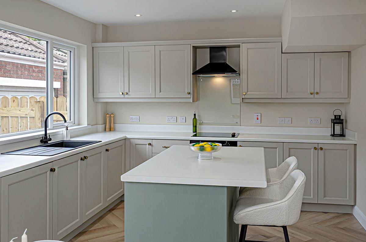 At the heart of the property is a stylish fitted kitchen, complete with a central island unit, modern cabinetry with provison to install integrated appliances, and generous space for dining ideal for both everyday living and entertaining.