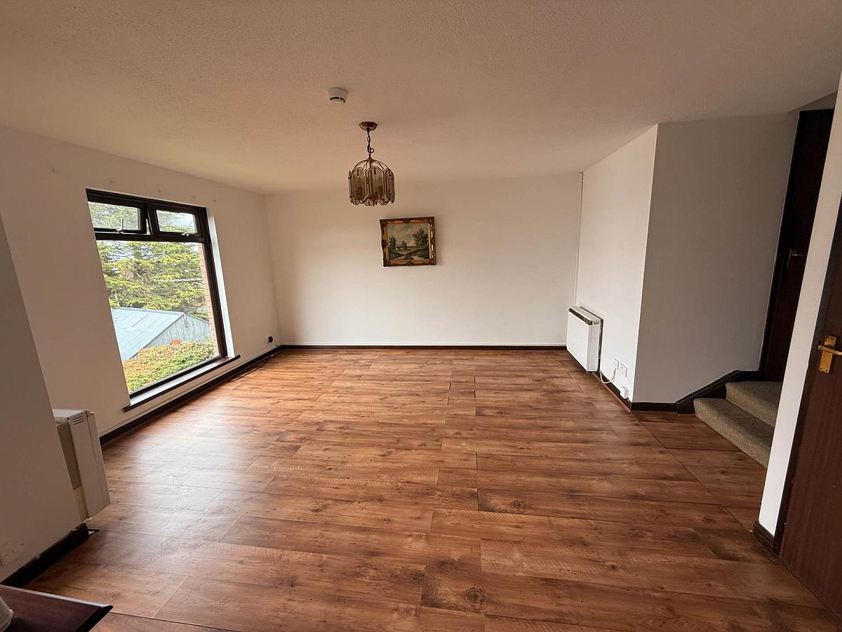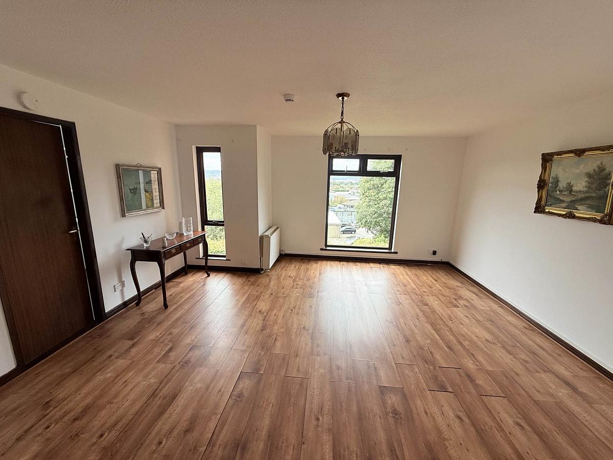 Timber laminate floor, storage cupboard and storage heaters. Large windows with elevated views over East Belfast
