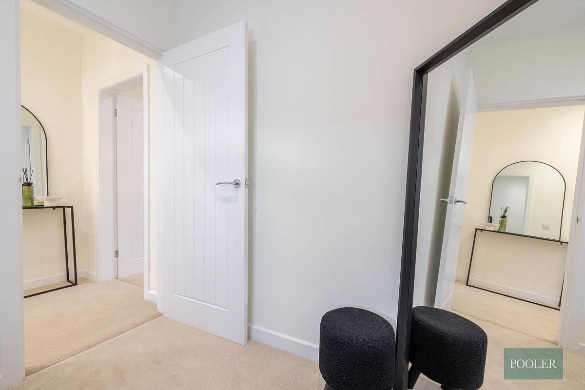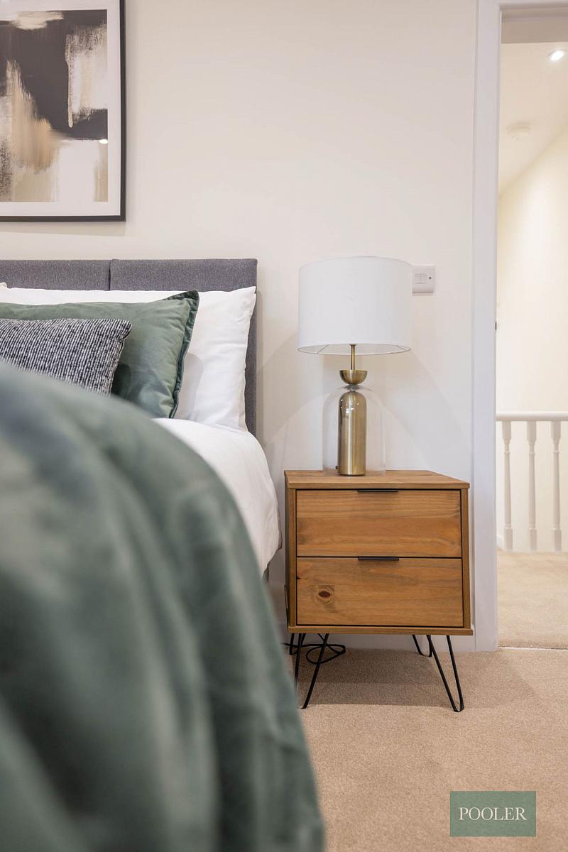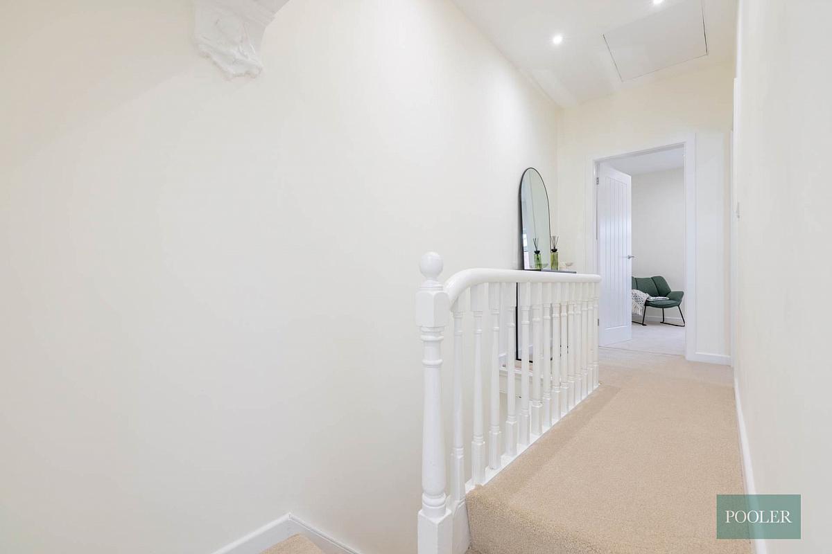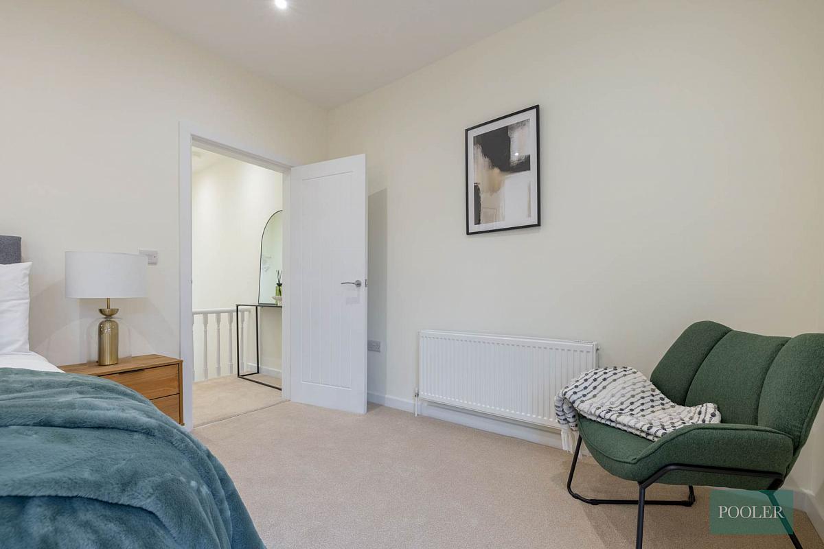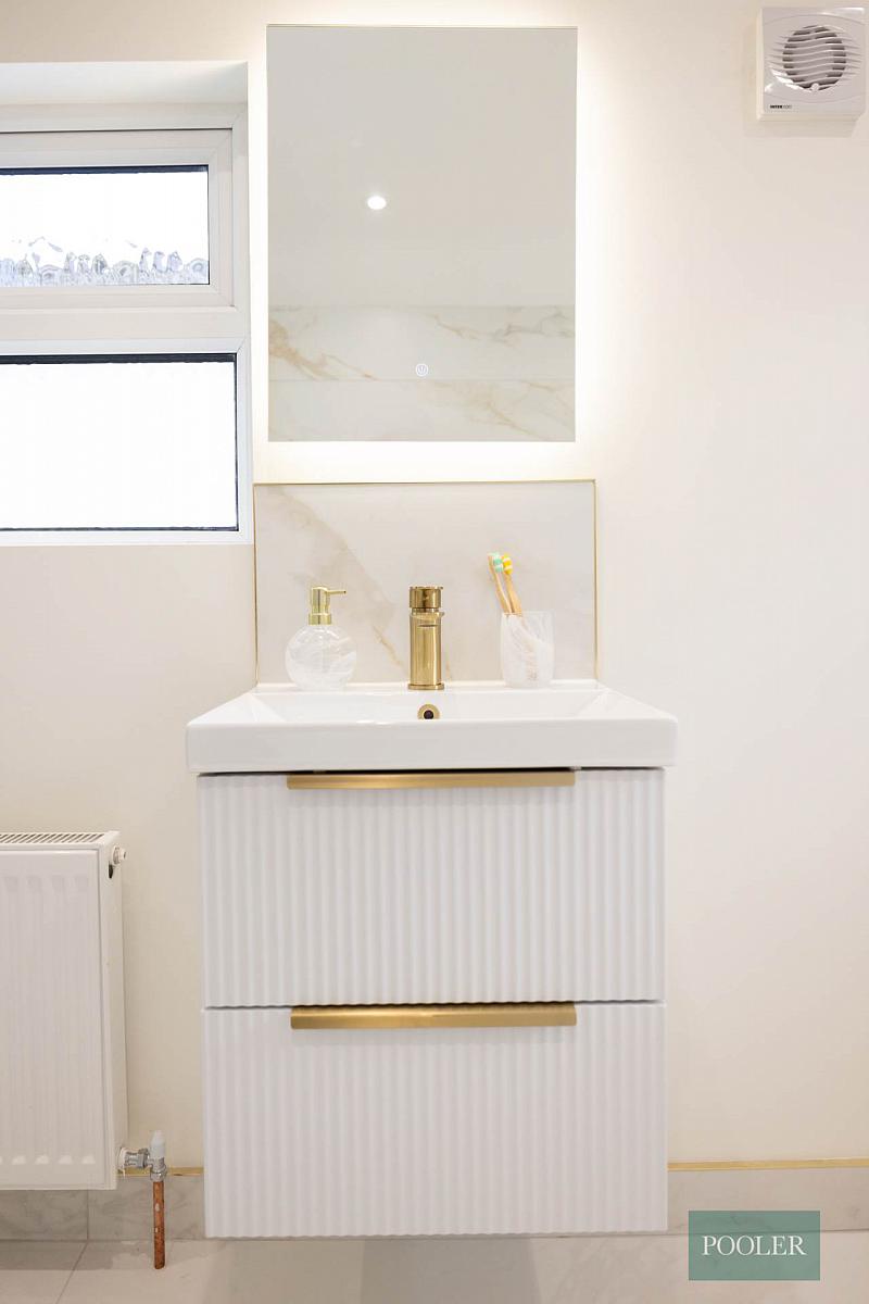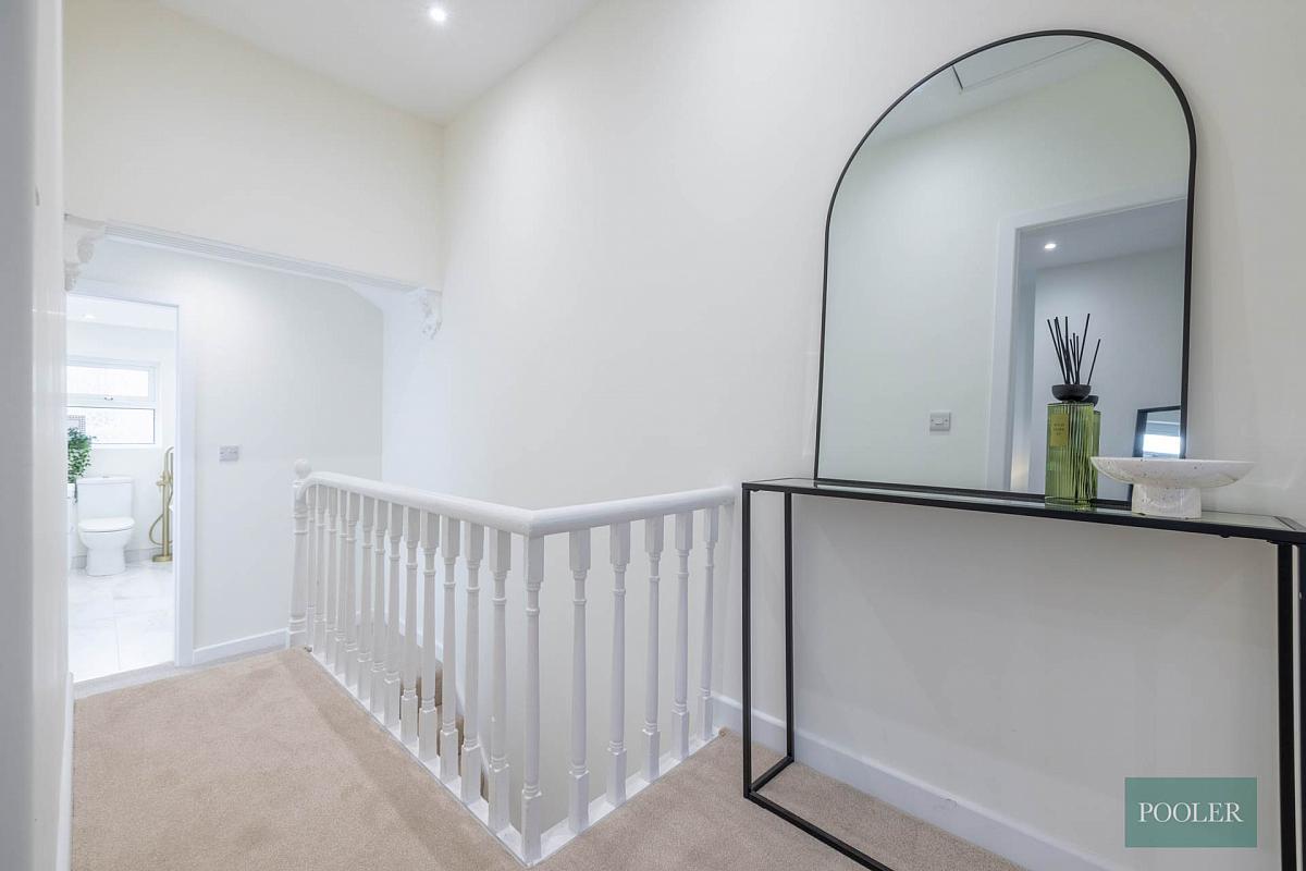 Upstairs, the stunning bathroom is a true highlight, featuring a freestanding bath, a separate shower cubicle, and striking brushed brass fittings that bring a touch of luxury and sophistication. It's a spa-like haven to enjoy at the end of the day.
