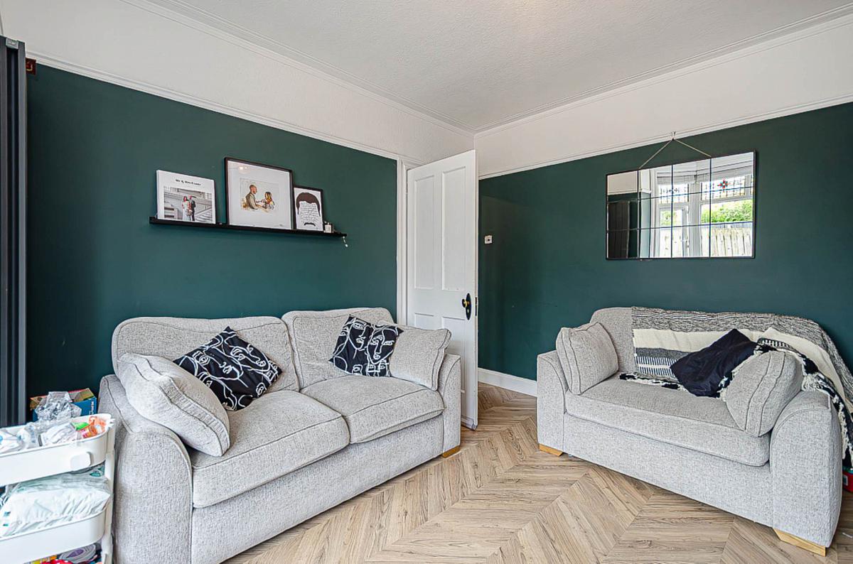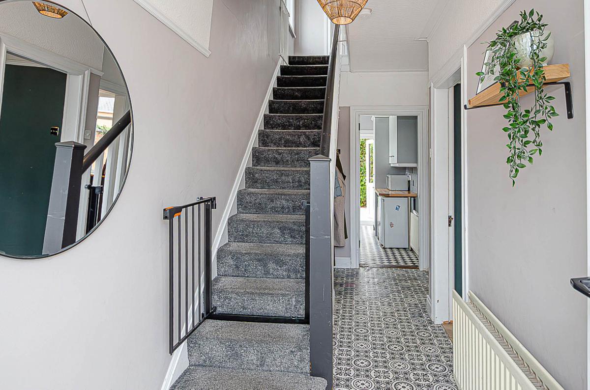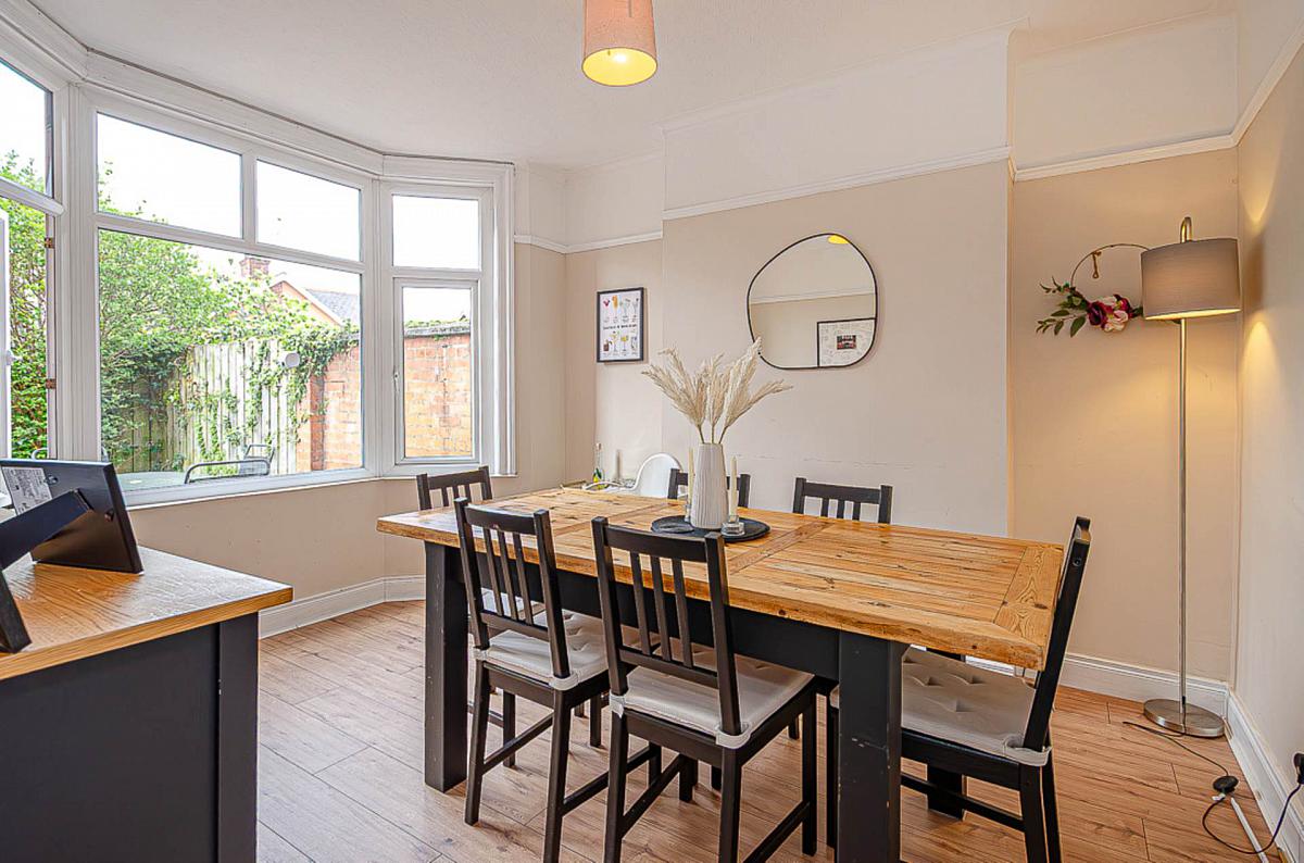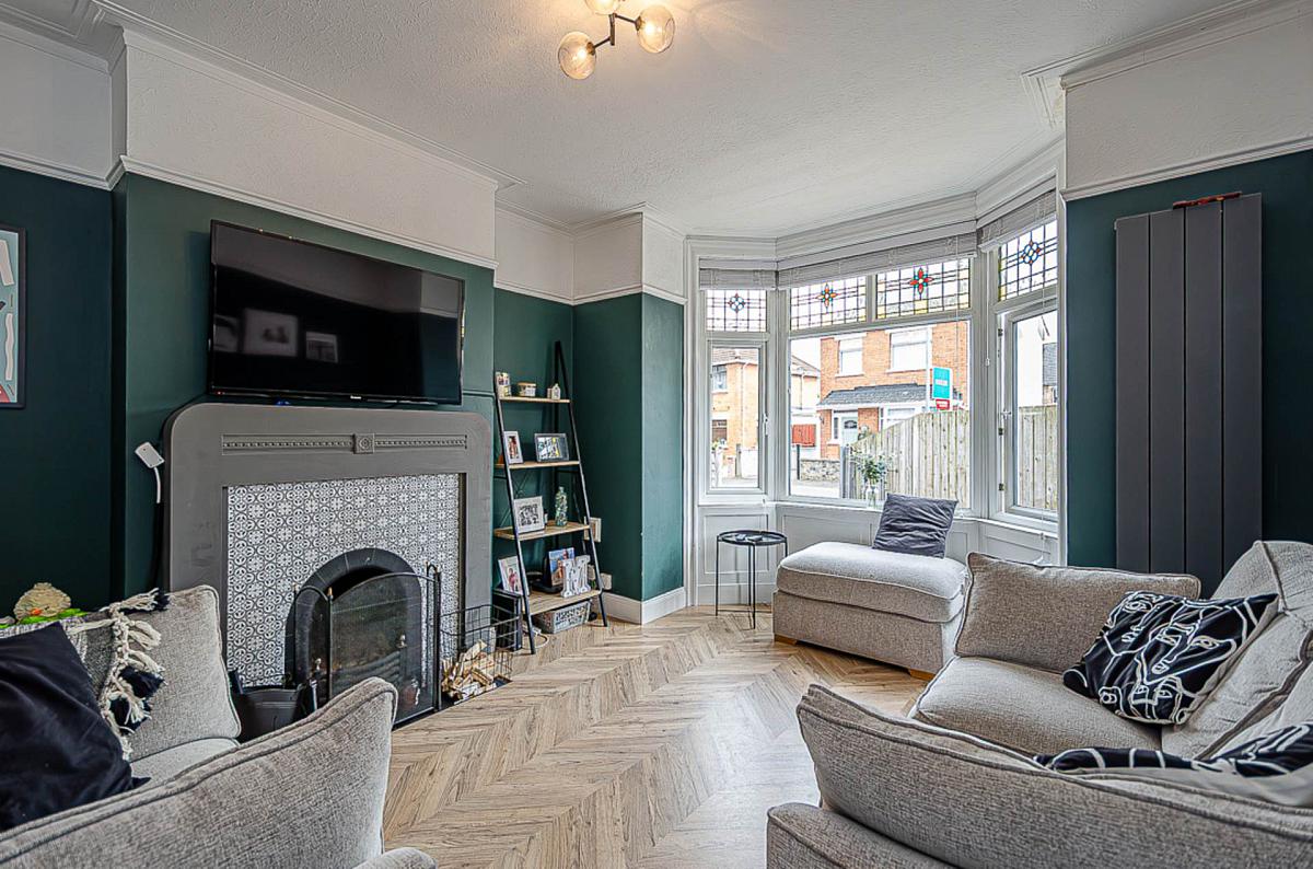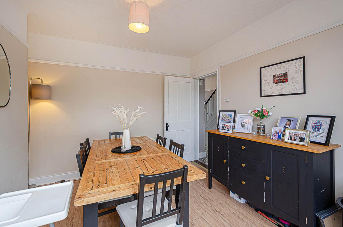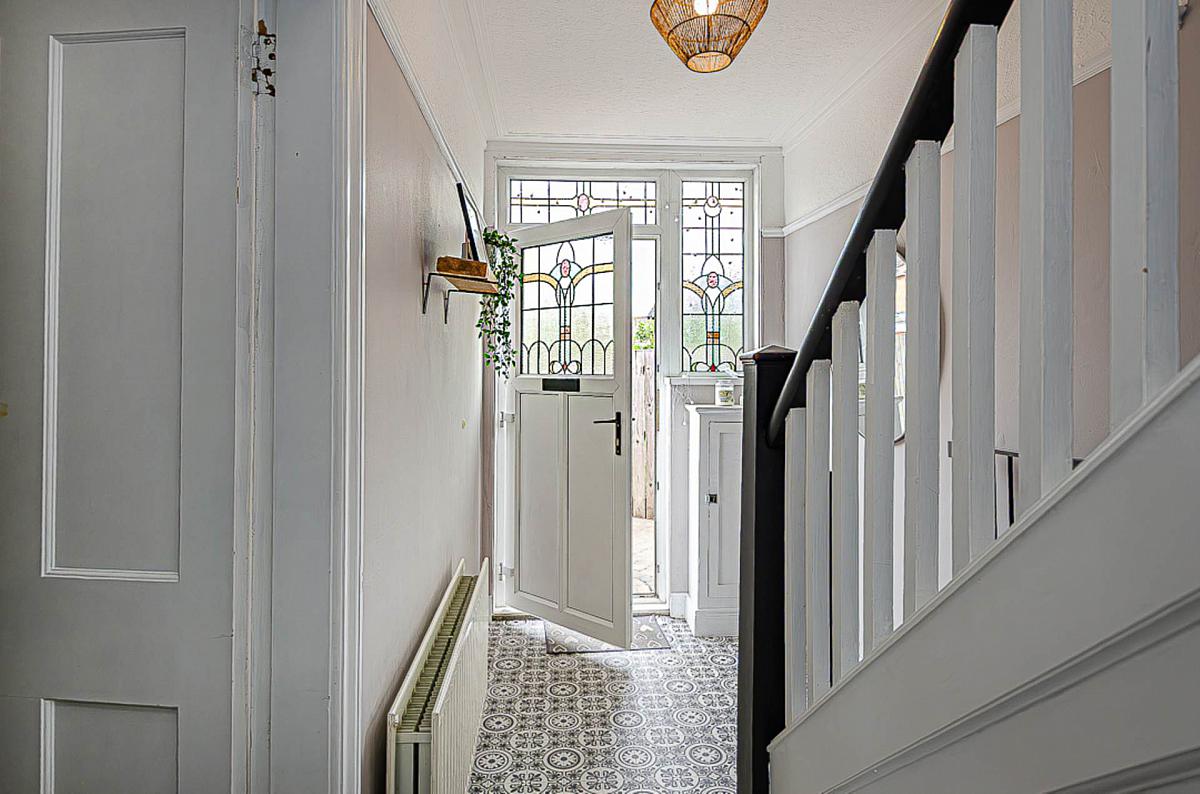 The welcoming entrance hall immediately highlights the home's character, with retained original features that create a warm and inviting first impression. To the front, the elegant living room is bathed in natural light from a classic bay window, enhancing the property's traditional appeal, while a contemporary vertical radiator adds a subtle modern contrast. The separate dining room enjoys a pleasant outlook over the rear garden and continues the home's period feel ideal for both everyday living and entertaining.