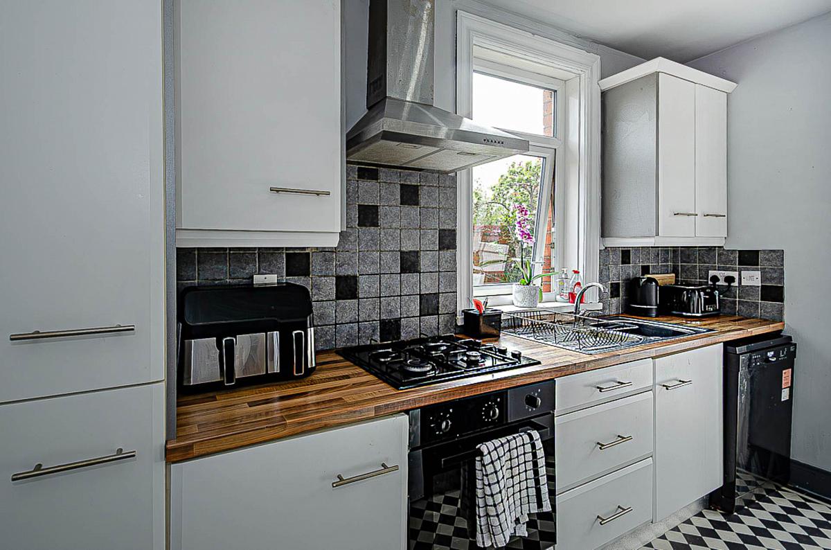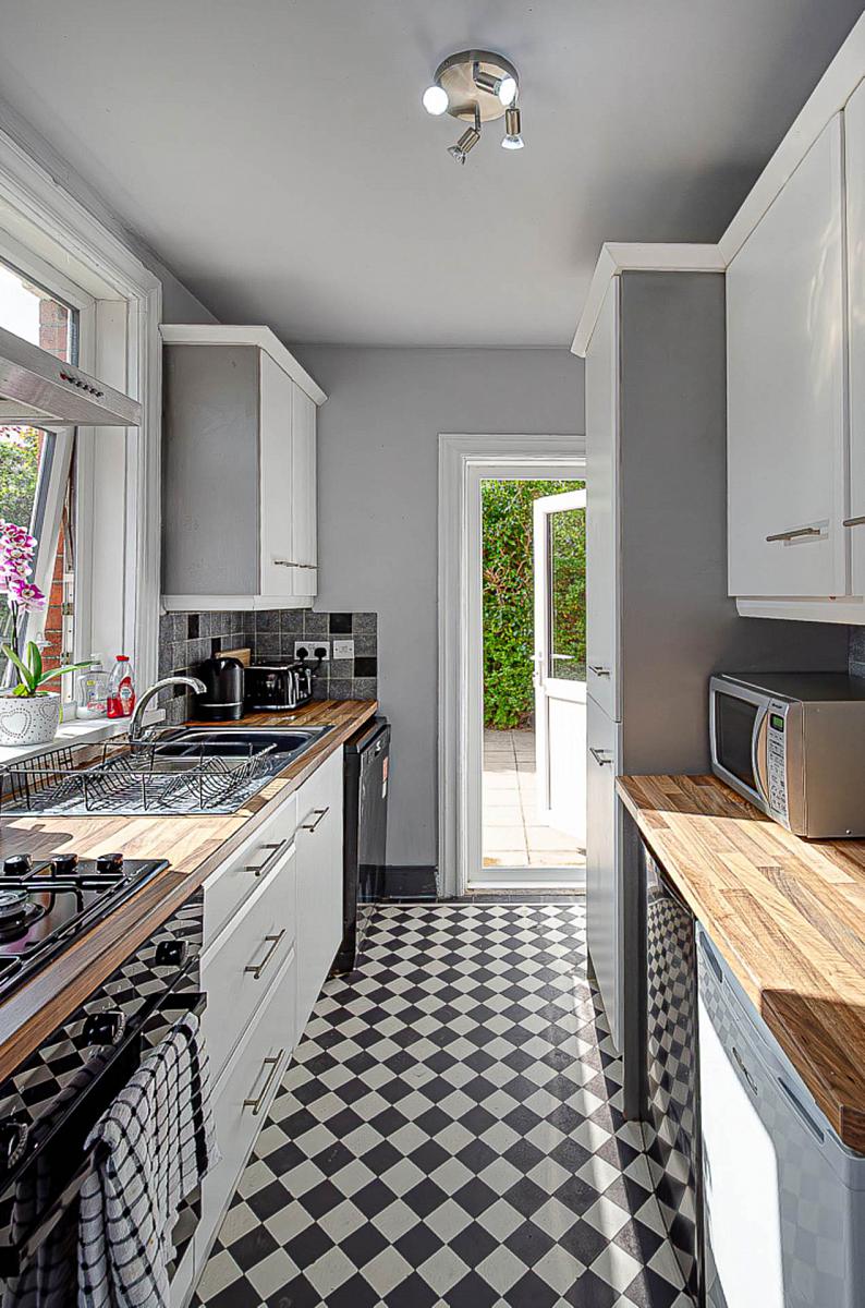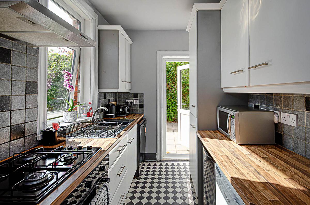 The kitchen has been thoughtfully updated in a modern style, offering a practical and well-appointed space that complements the home's character.
