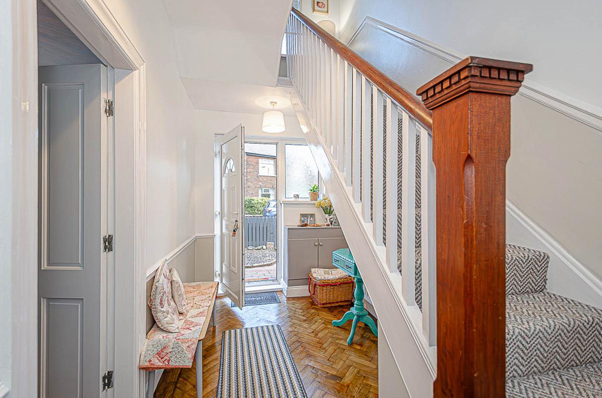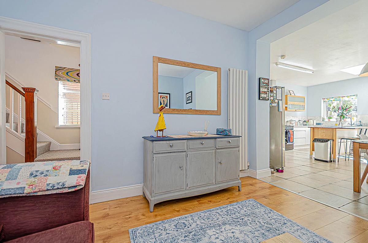 Upon entering, you are greeted by an inviting entrance hall featuring elegant parquet flooring, immediately setting the tone for the character and quality found throughout. The front reception room is a bright and relaxing space, enhanced by a charming bay window, while a separate family room/snug provides a cosy and flexible area ideal for both everyday living and entertaining.