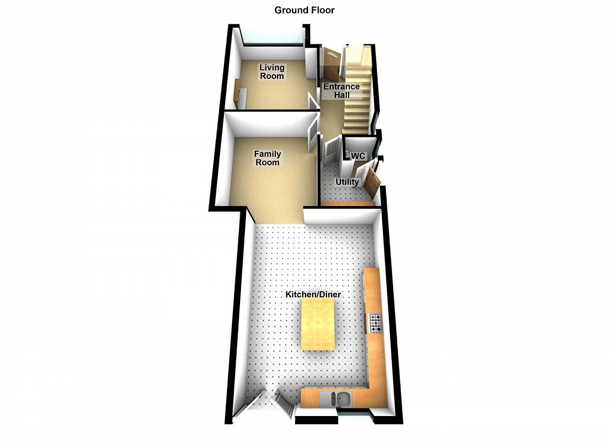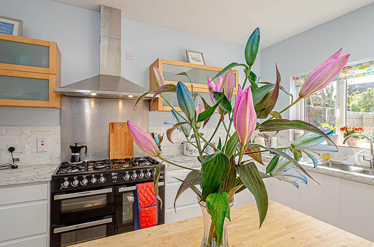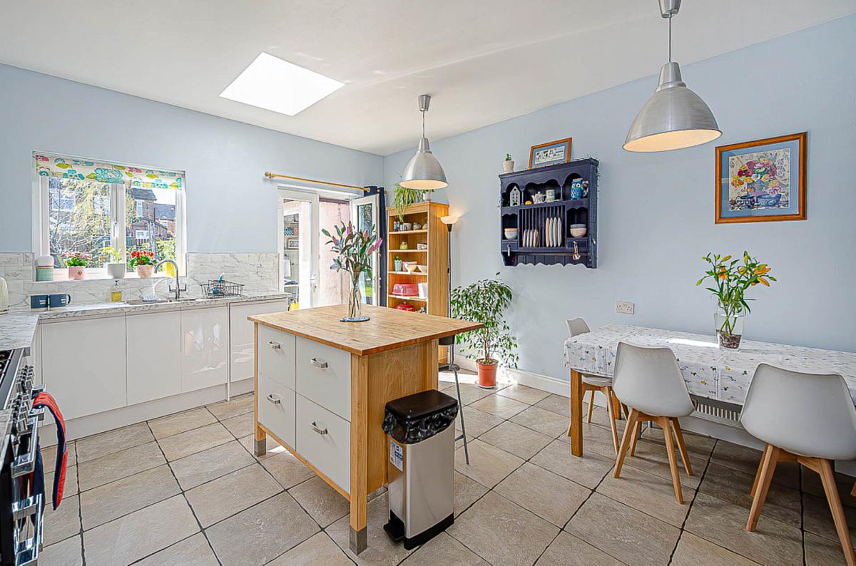 The true heart of the home lies to the rear, where a substantial two-storey extension has created a stunning open-plan kitchen and dining space. Designed with both practicality and sociability in mind, this impressive area is perfect for family life and hosting guests alike. French doors open directly onto the garden, seamlessly connecting indoor and outdoor living. A useful utility room and a conveniently located downstairs W.C. complete the ground floor accommodation.
