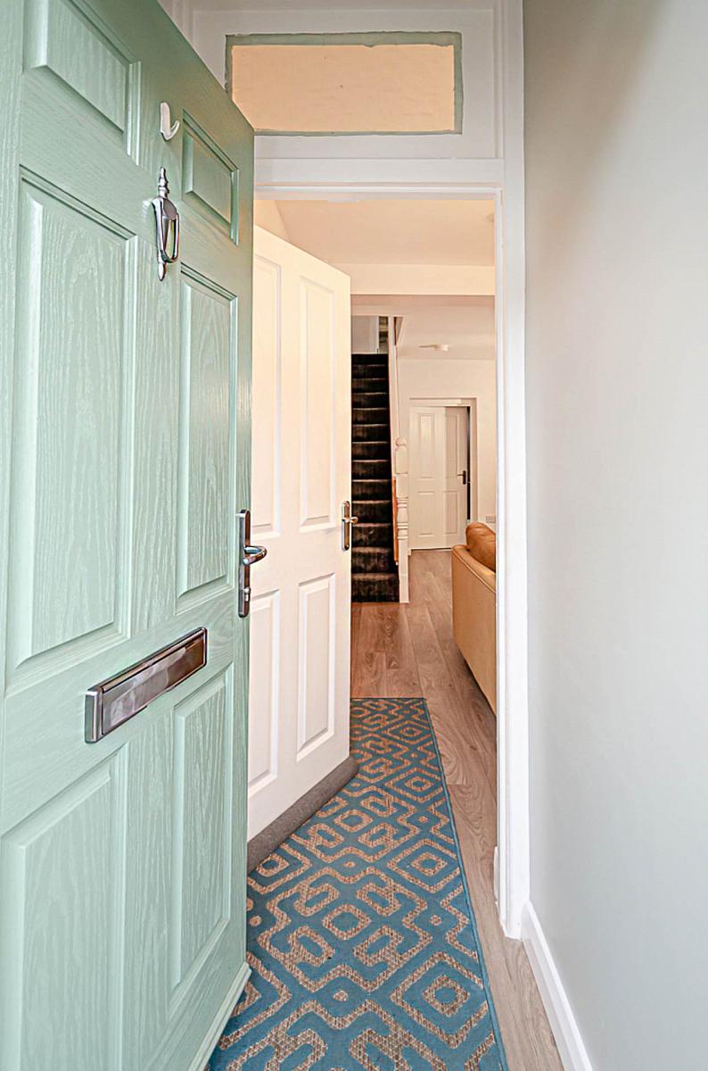 Recently fitted composite front door, timber laminate floor and alarm panel