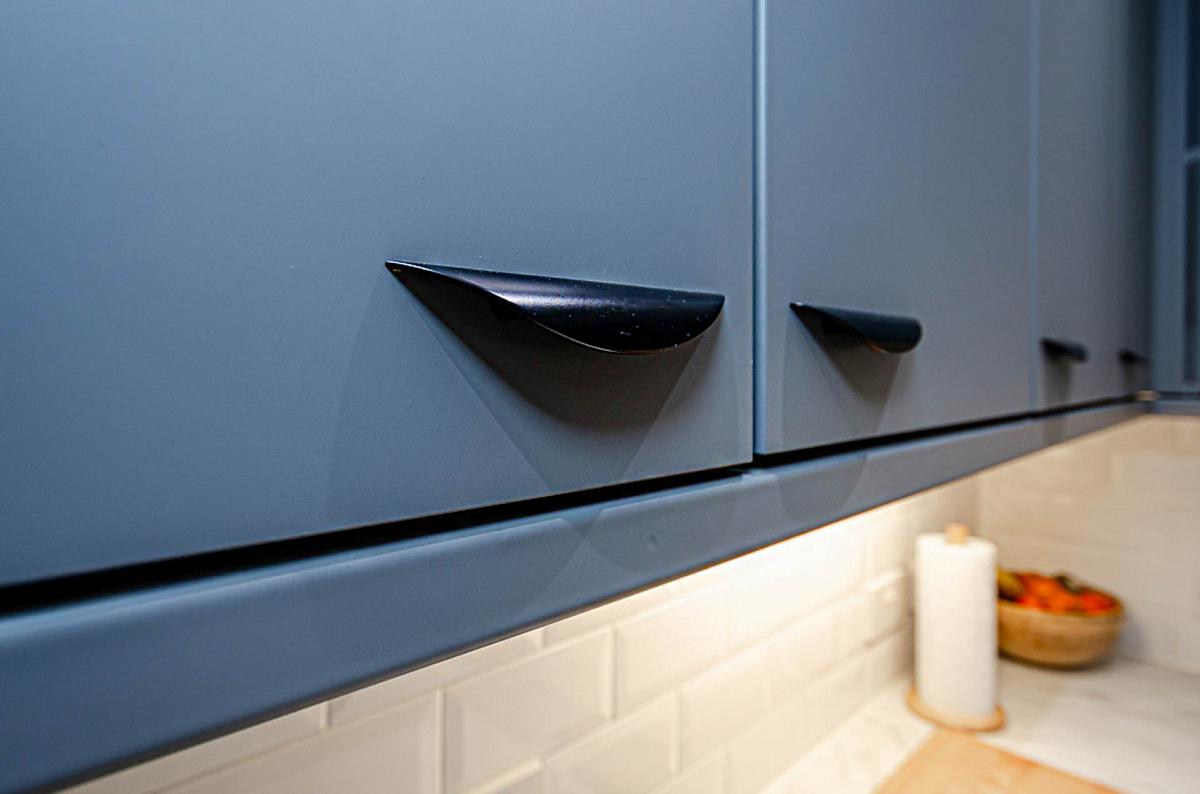 Modern kitchen in grey finish with integrated appliances