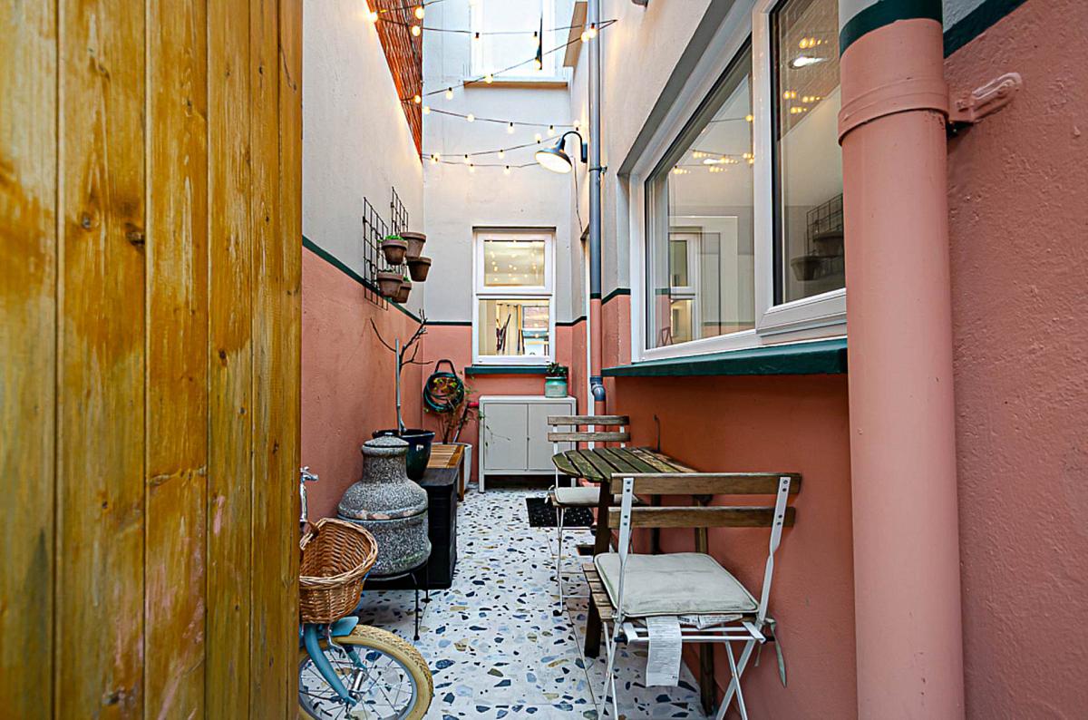 Tidy forecourt and tiled rear yard