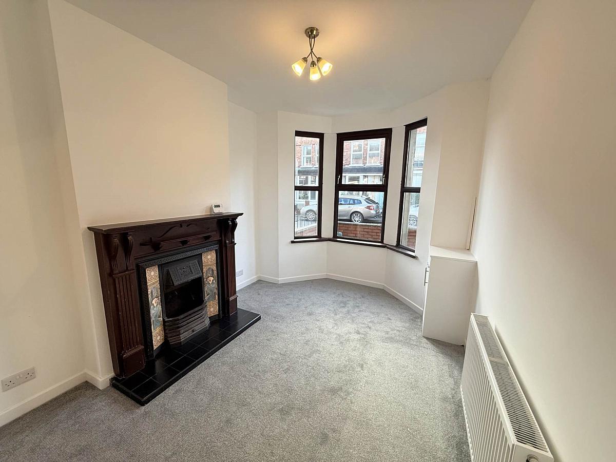 Through lounge with feature fireplace and bay window