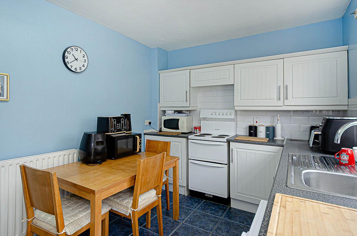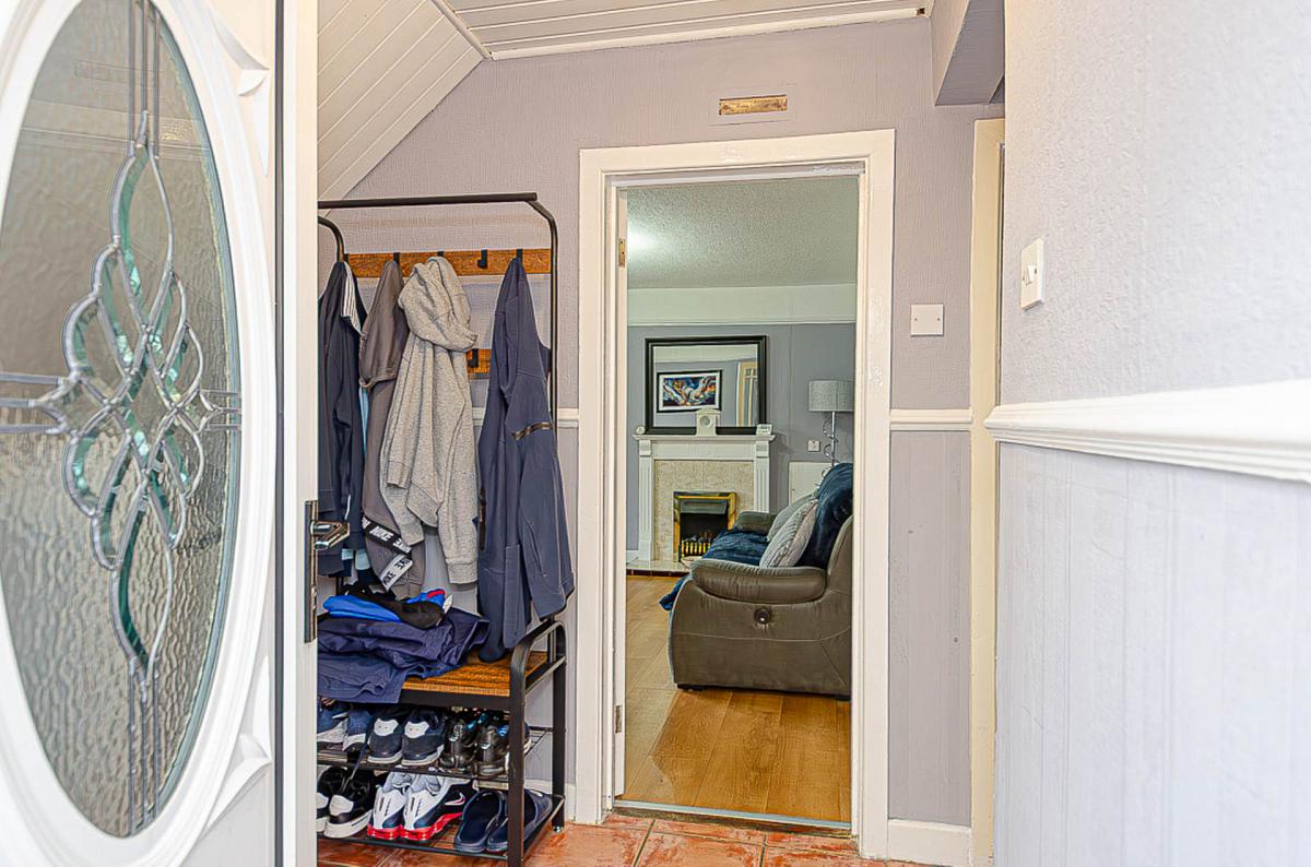 The property is accessed via an entrance hall with a durable ceramic tiled floor, providing a practical and welcoming first impression. The bright and airy living room features a charming bow window, allowing plenty of natural light to flow into the space and creating a comfortable setting for relaxation and entertaining.
