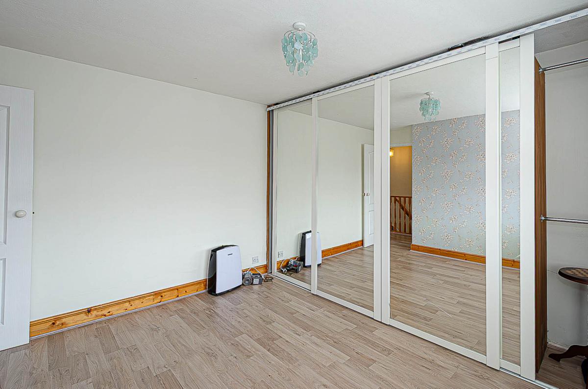Built in mirrored sliderobes, cornice and timber laminate floor