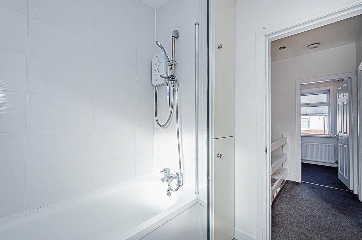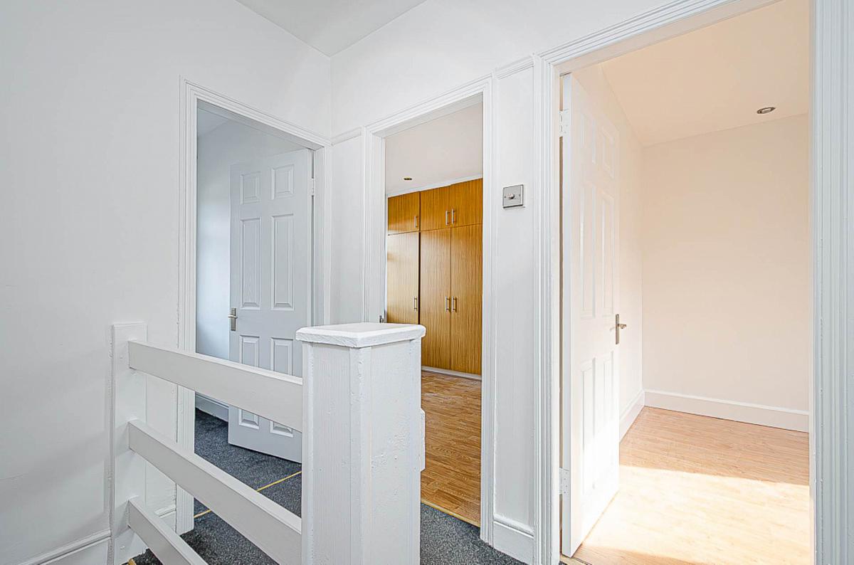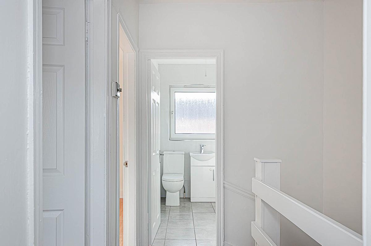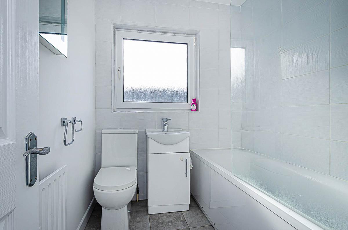 Upstairs, there are three well-proportioned bedrooms, including a generous principal bedroom and two further versatile rooms suitable for children, guests, or a home office. The contemporary bathroom features a sleek three-piece suite comprising a panelled bath with shower over, wash hand basin, and low-level WC, finished with modern tiling and quality fittings.