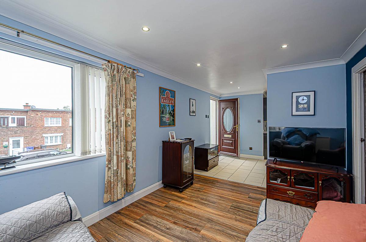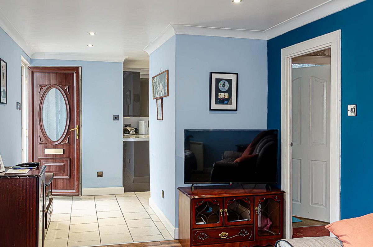 Accessed via a private entrance porch, the property opens into a bright and spacious reception hall, creating an immediate sense of welcome. The well-proportioned living room is enhanced by contemporary timber laminate flooring and excellent natural light, providing a comfortable and inviting space ideal for both relaxing and entertaining.