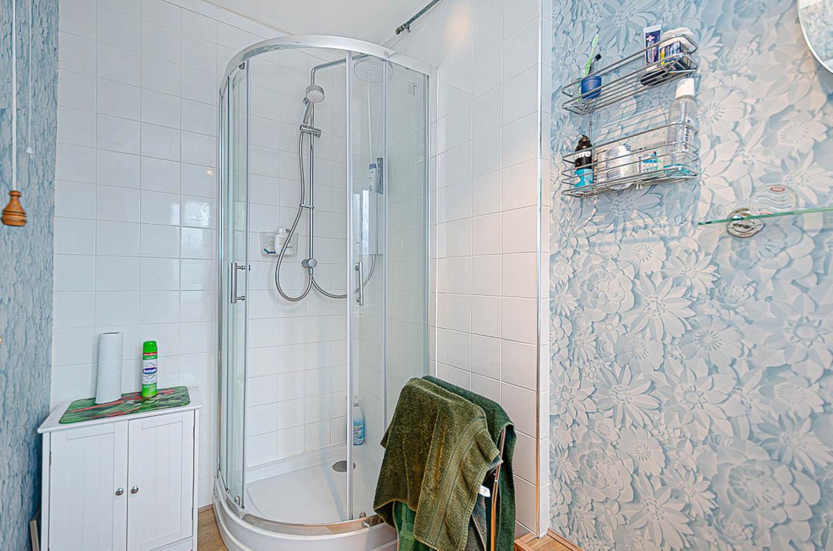 The shower room is fitted with an electric shower and designed for practical everyday living.