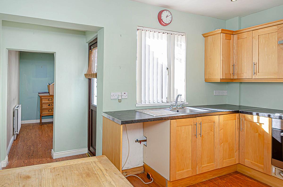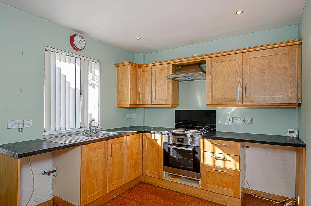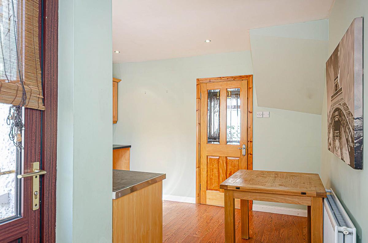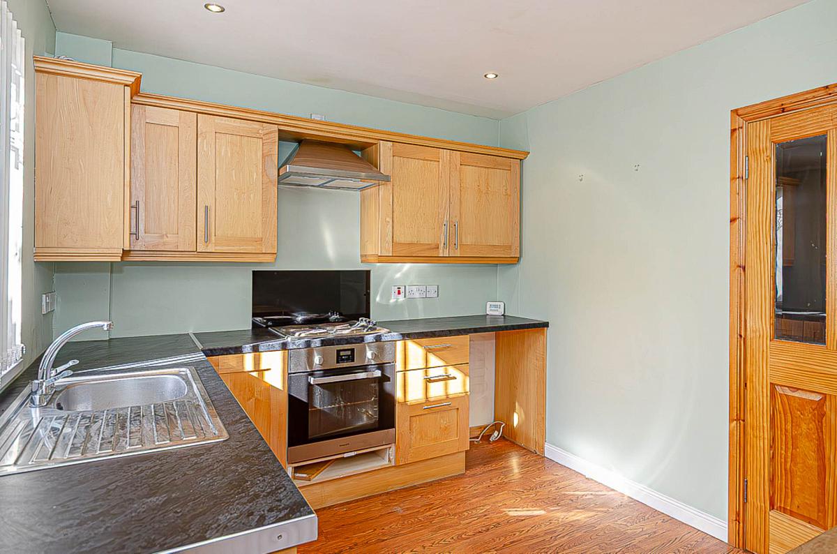 To the rear, the home benefits from a modern fitted kitchen designed for practical everyday living. Beyond the kitchen is a rear hall with useful utility and storage space, offering additional functionality and convenience.
