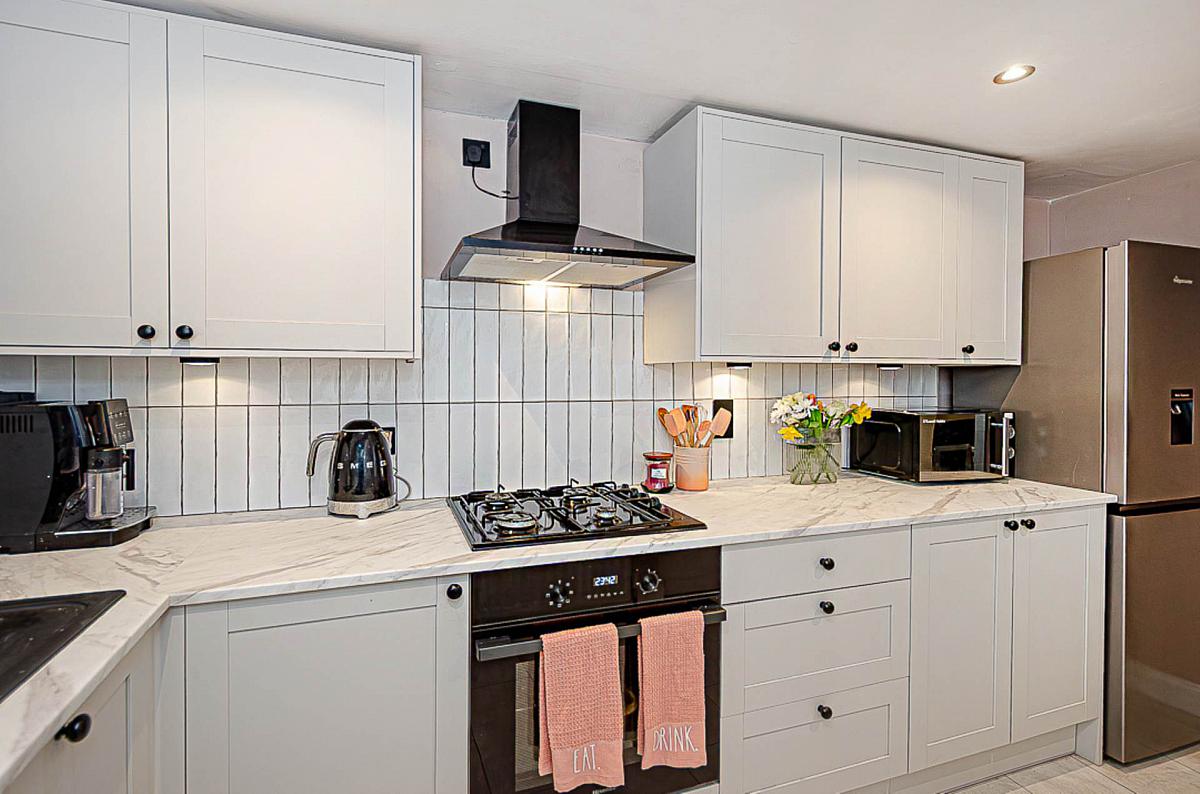 To the rear, the recently fitted kitchen offers a sleek and modern design, thoughtfully arranged to combine style with practicality. With ample worktop space and a range of contemporary units, it is perfectly suited to everyday living.