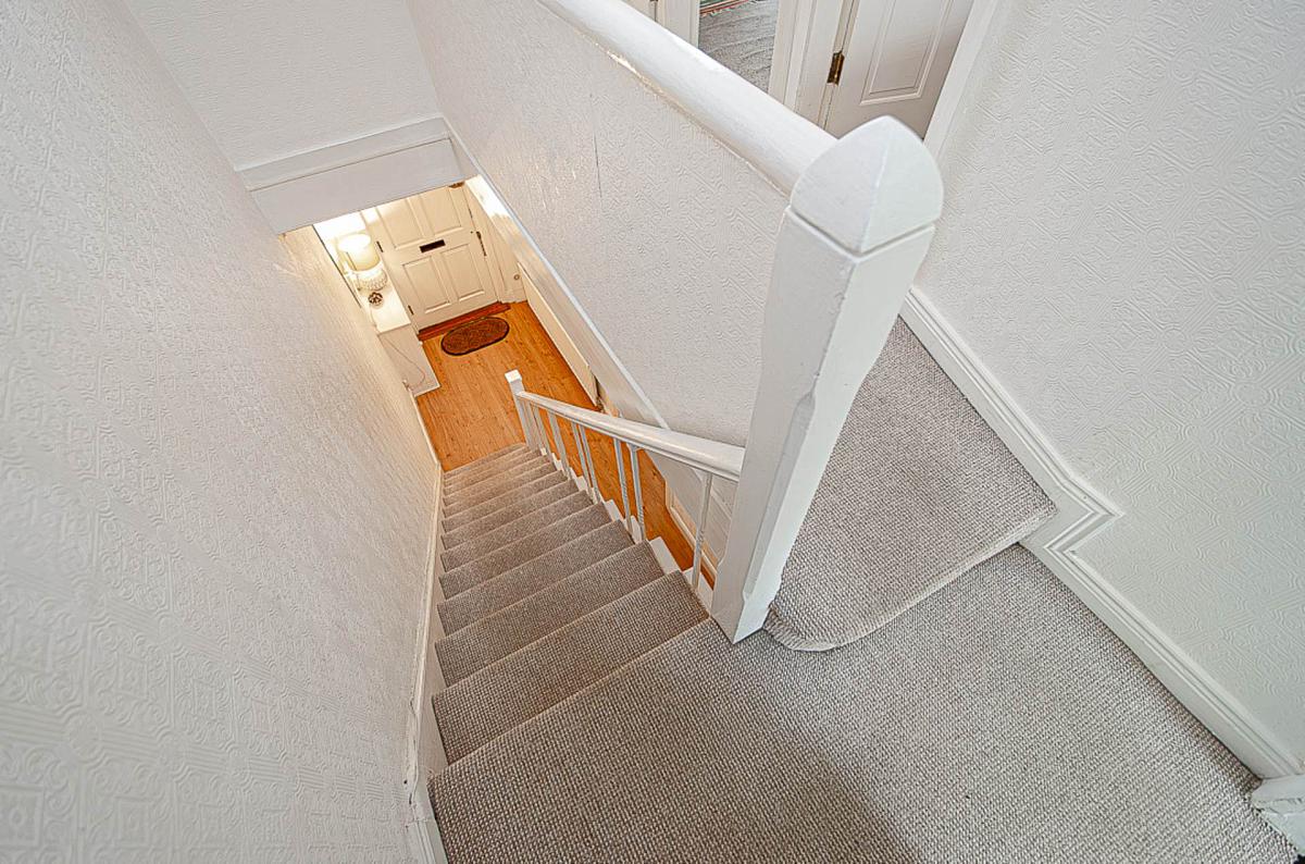 Storage under stairs, cornice and timber laminate floor
