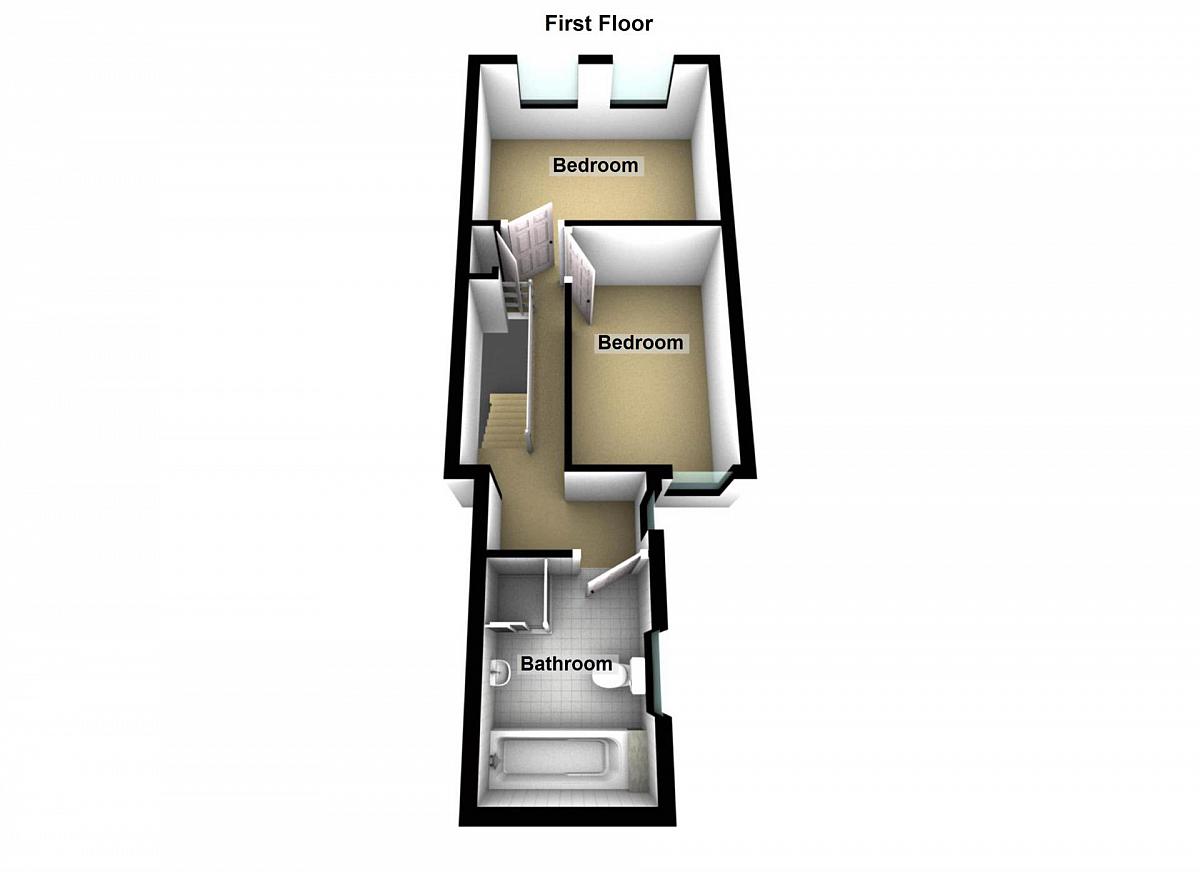 Upstairs, there are two well-proportioned bedrooms, both offering comfortable and versatile accommodation. The accommodation is completed by a modern bathroom suite, featuring both a bath and a separate shower cubicle for added convenience.