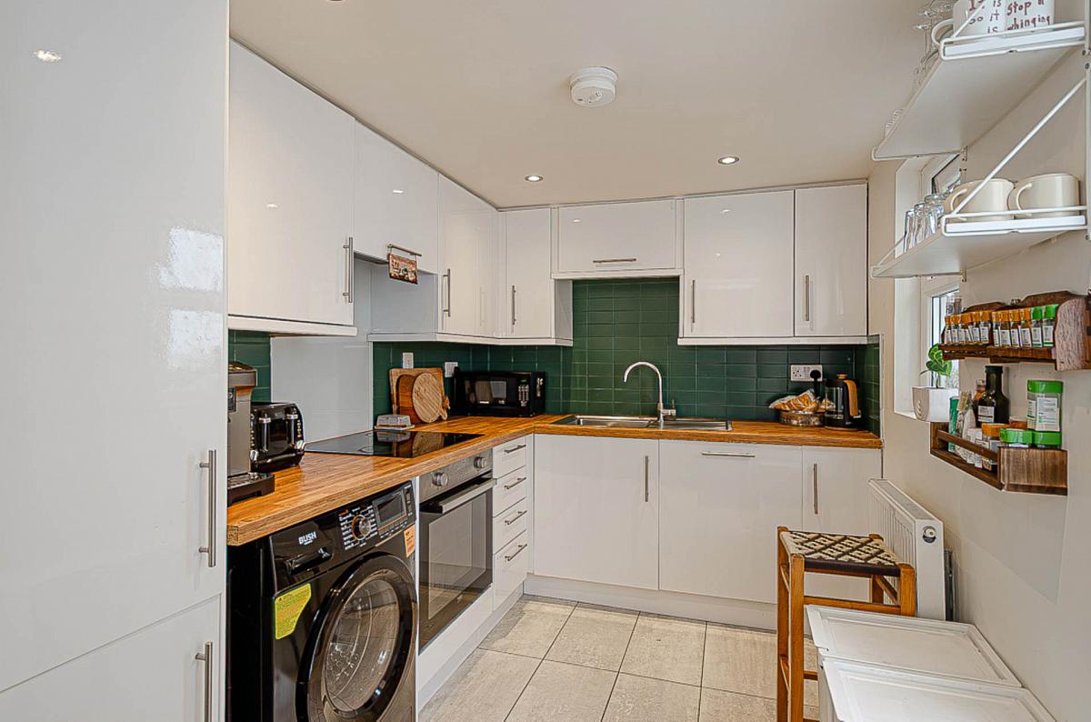 The contemporary fitted kitchen is well-appointed with a range of integrated appliances, offering both style and practicality.