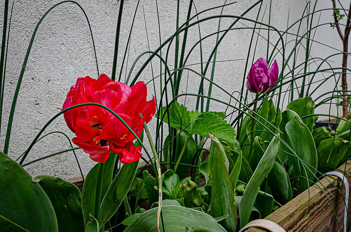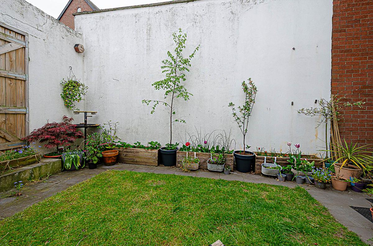 Large forecourt in small stones, shrubs and decorative paved path. Rear garden in paving and lawn with ample space for sitting out