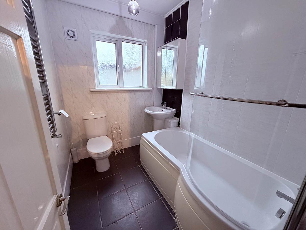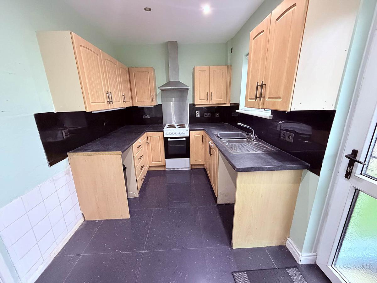 End terrace home offering a spacious living room, fitted kitchen with high and low level units, and a downstairs bathroom with shower over bath. The property includes three bedrooms, oil fired central heating, U.P.V.C. framed double glazing, and front and rear gardens.