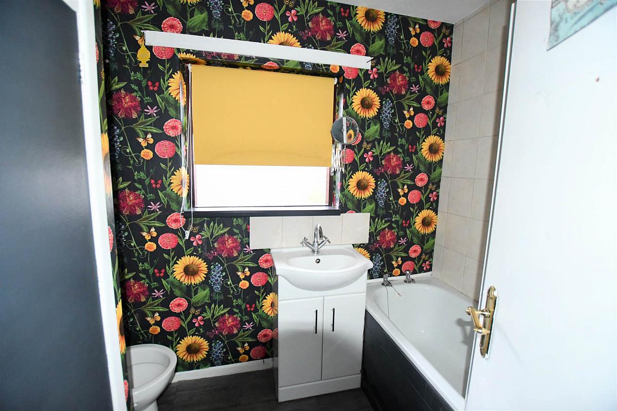 Paneled bath, electric shower, vanitory unit, low flush w.c., hot press copper cylinder, immersion heater.